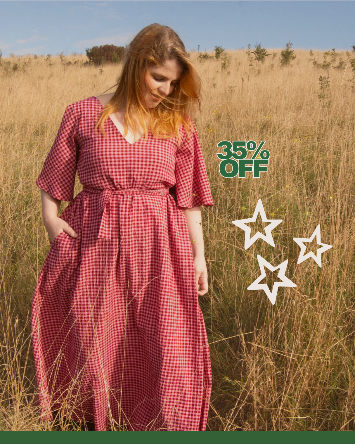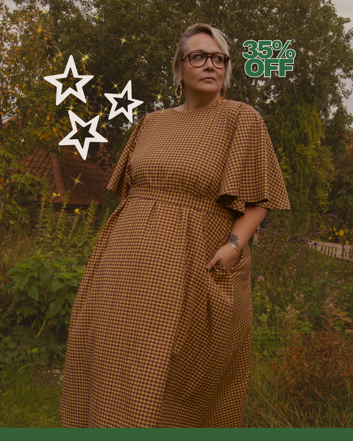 The Joan Dress in Burgundy/Chartreuse Gingham