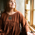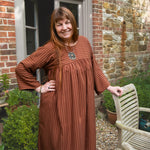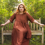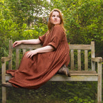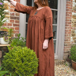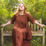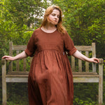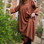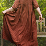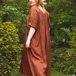 A limited edition of our bestselling Everything Dress in the most beautiful stripe fabric! This copper brown stripe is a 100% tencel twill, with a delicious drape and gentle sheen. Think earthy sophistication with a playful twist.