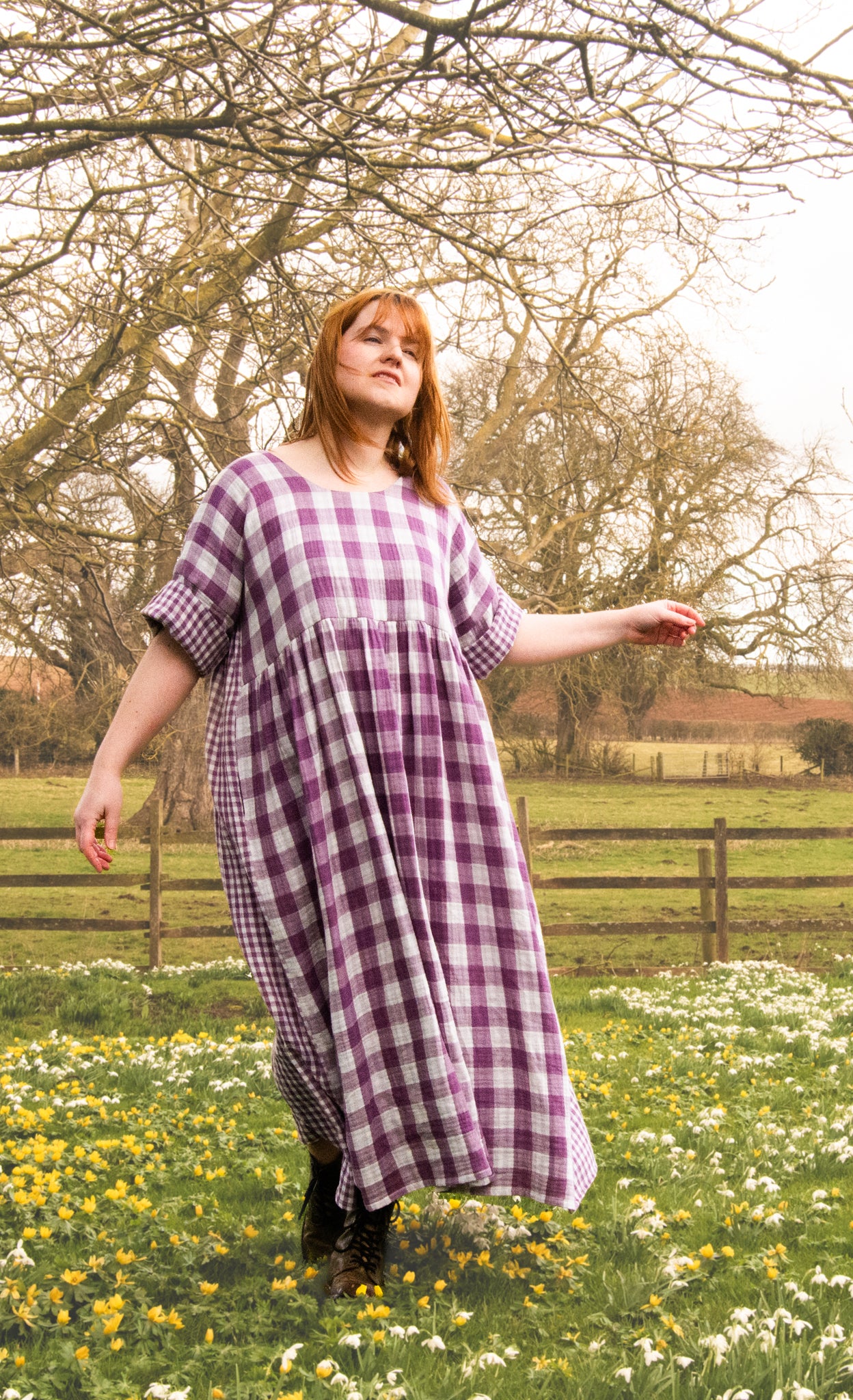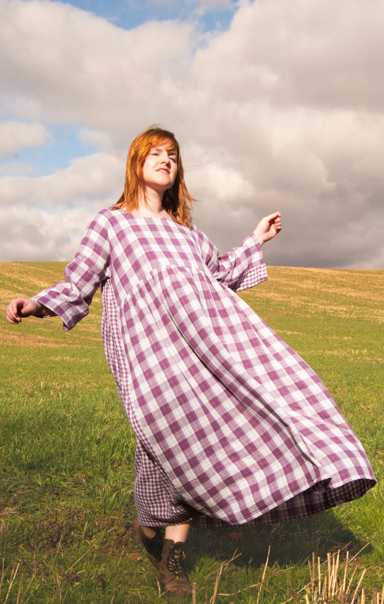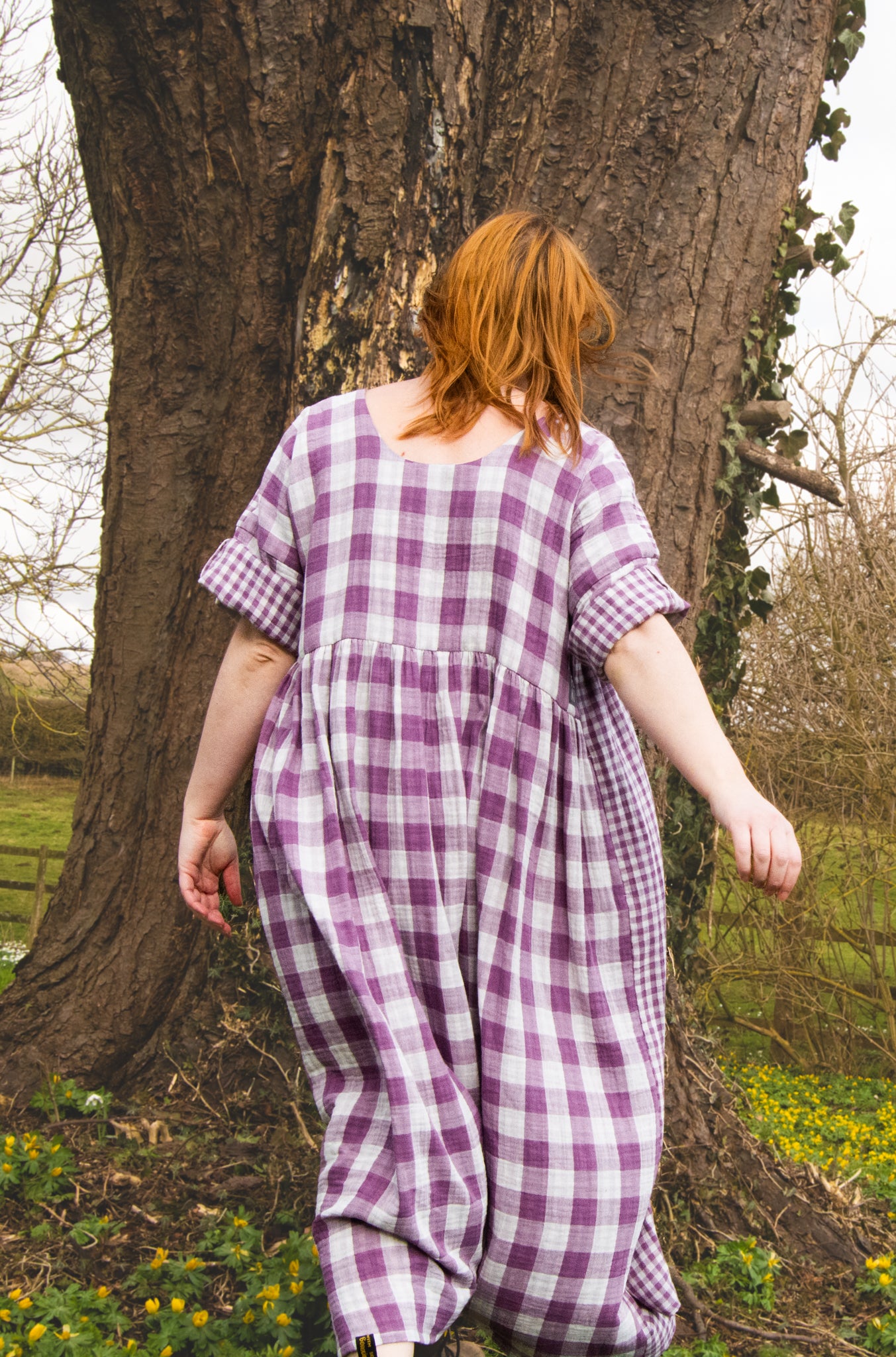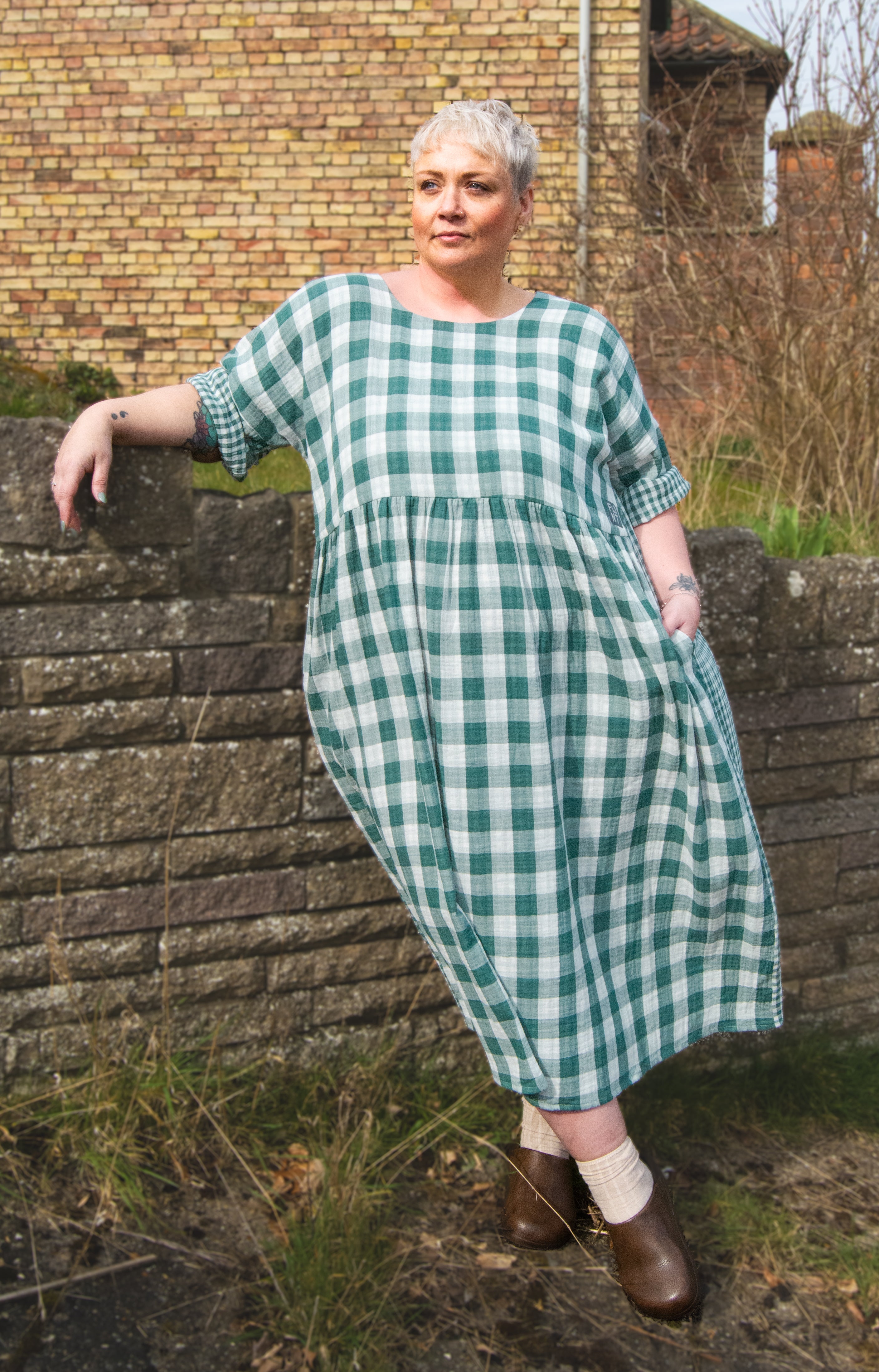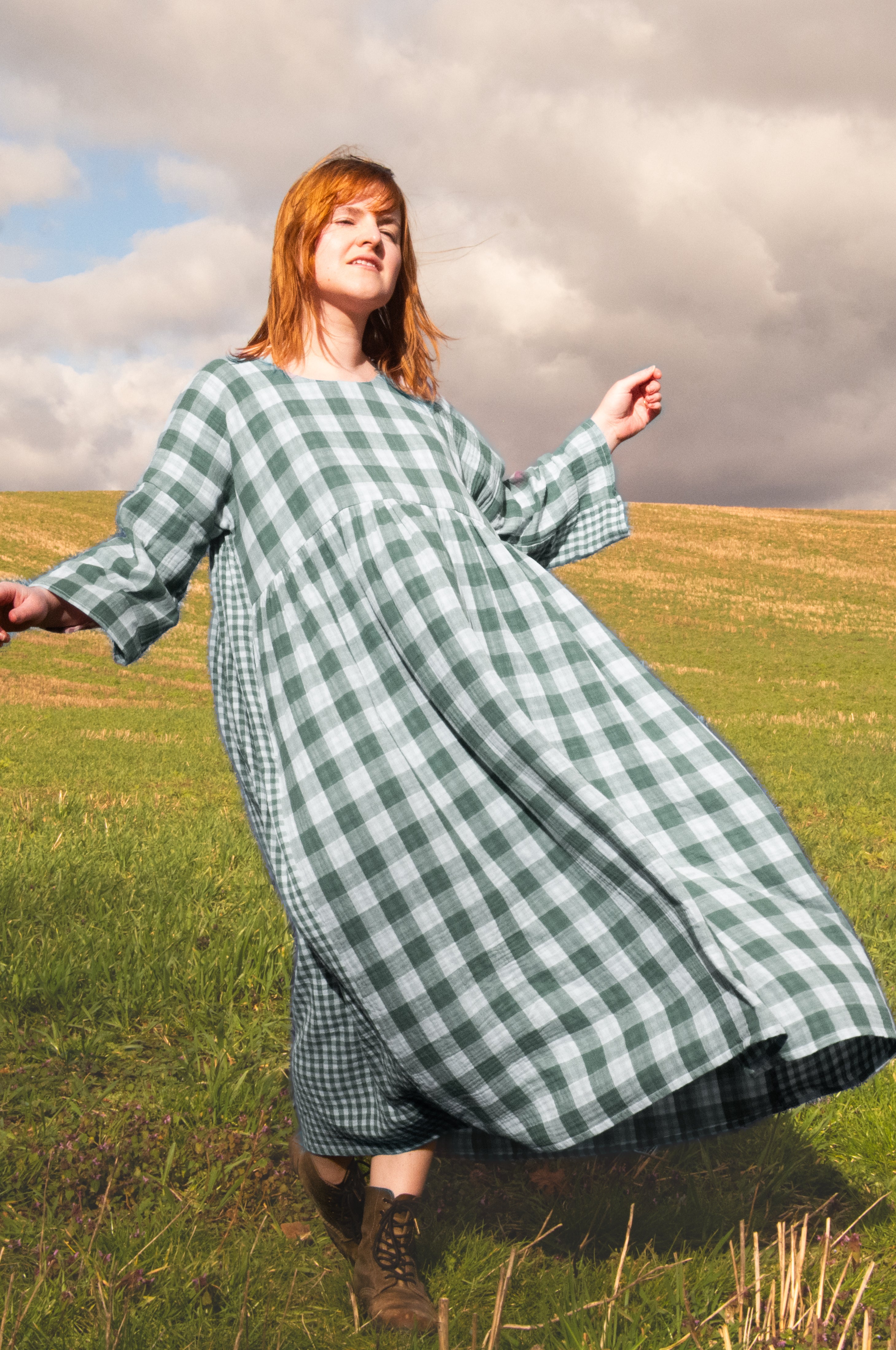 Based on our bestselling swing dress designs, The Everything Dress combines everything you love about them into one versatile piece. With a straight sleeve that can be rolled to a cuff, this dress is also reversible, so you can switch between a short bodice (and small check) on one side, and a longer one (and large check) on the other, both leading to opulent gathers that hang from this seam to create a full skirt with a LOT of swing! A dropped armhole means this one is super comfy, and it has roomy side pockets too.