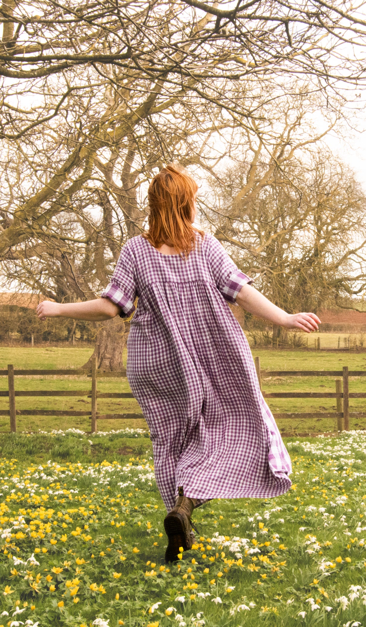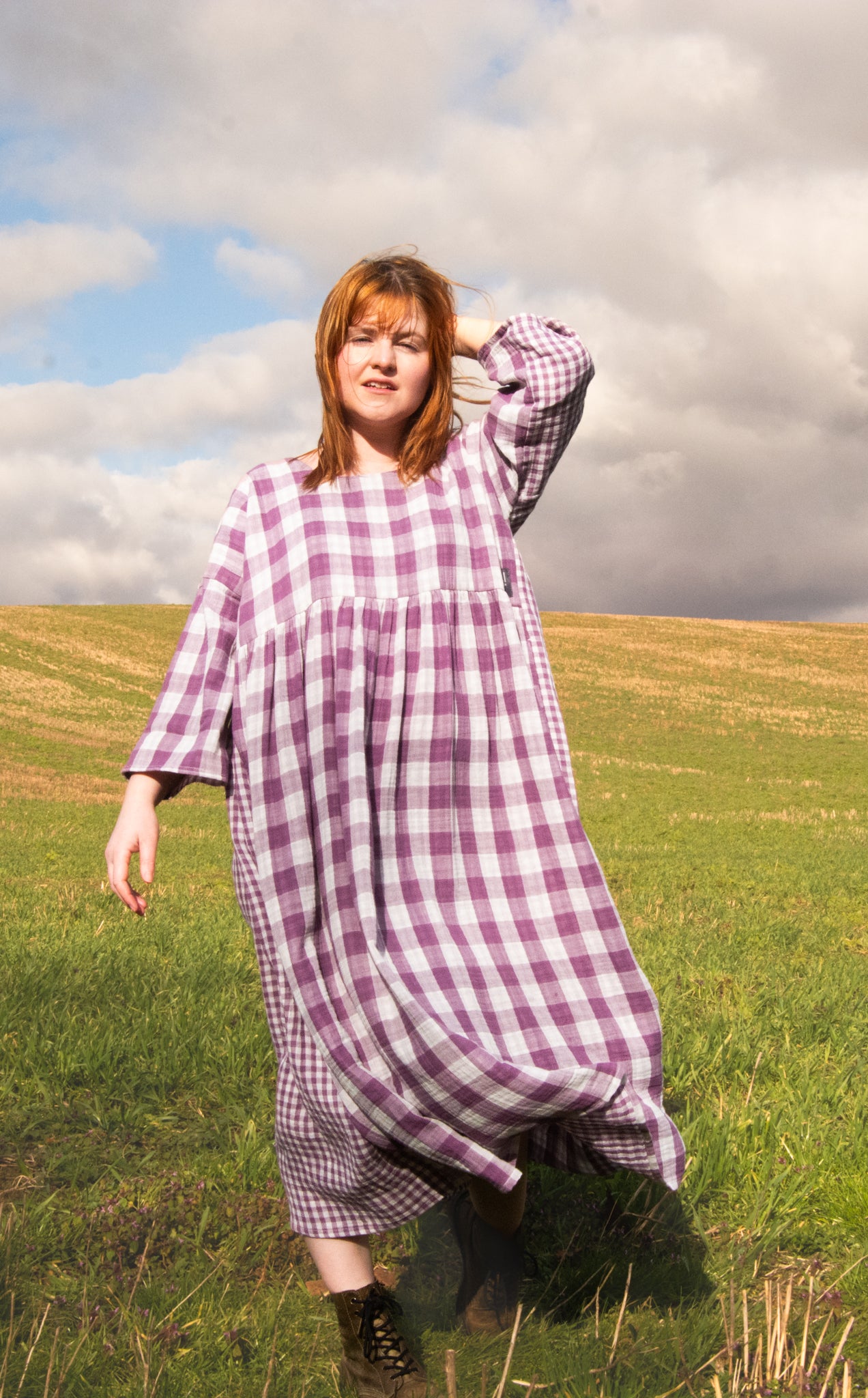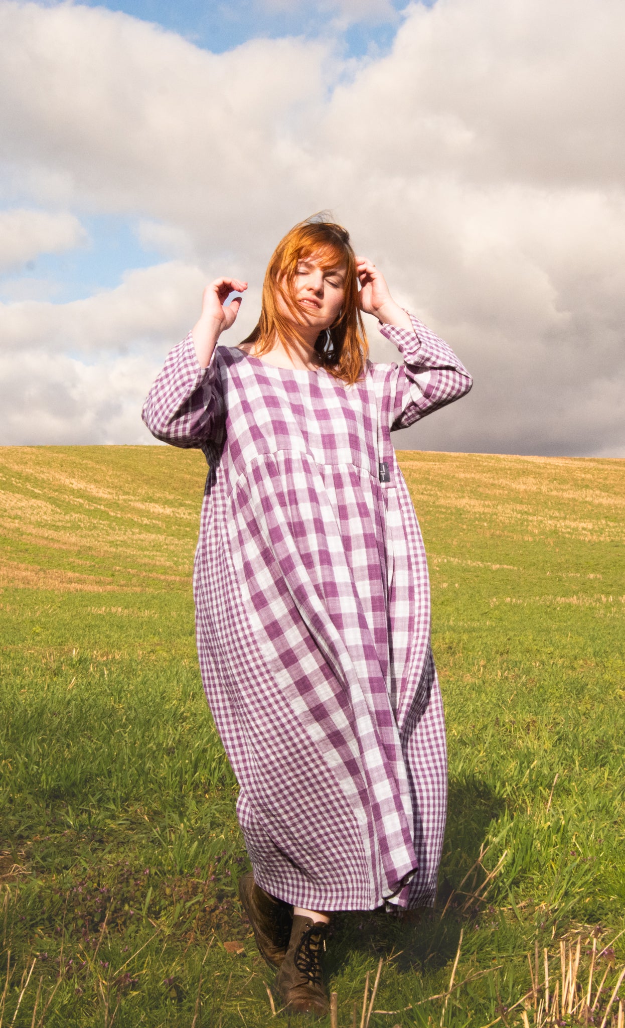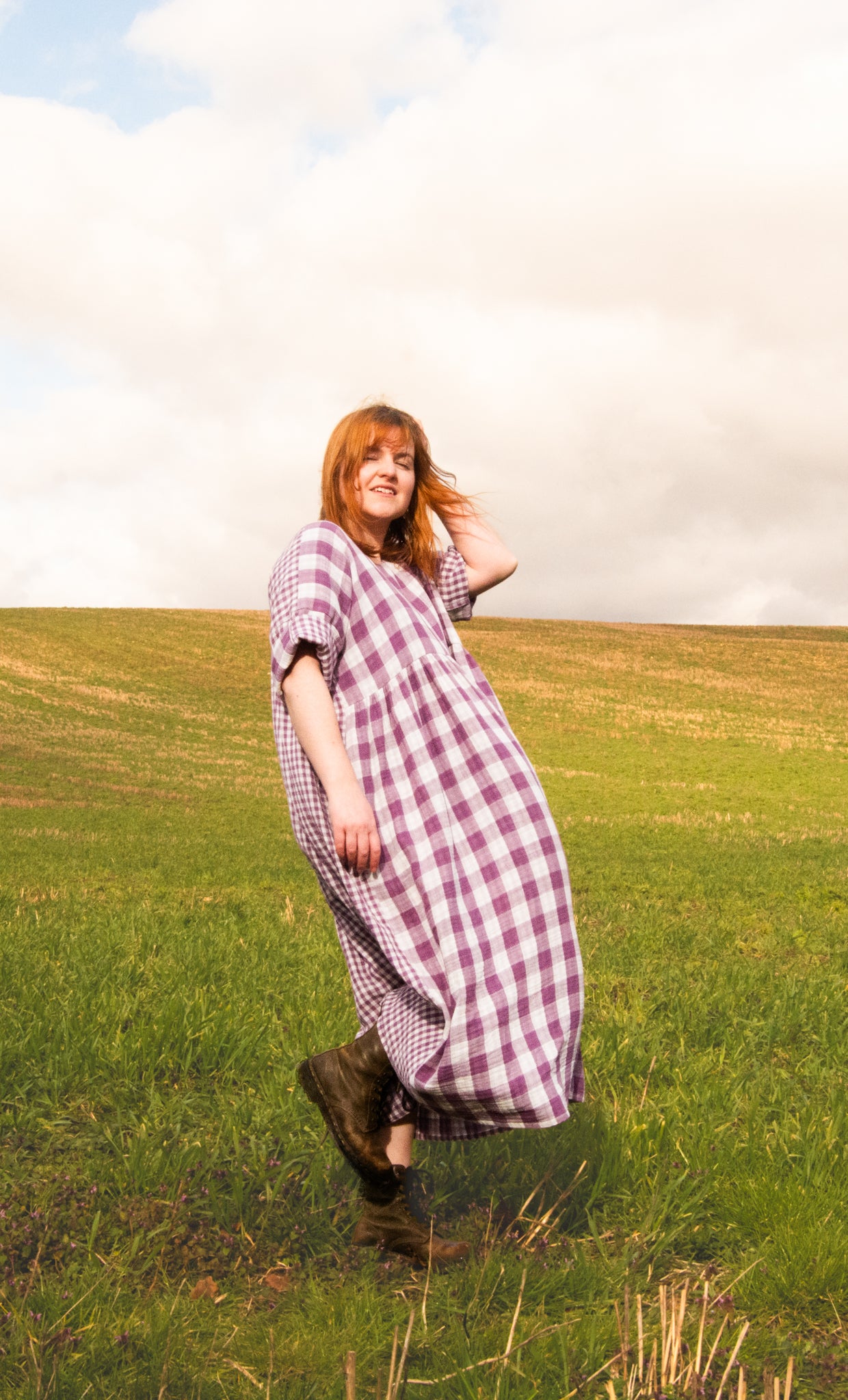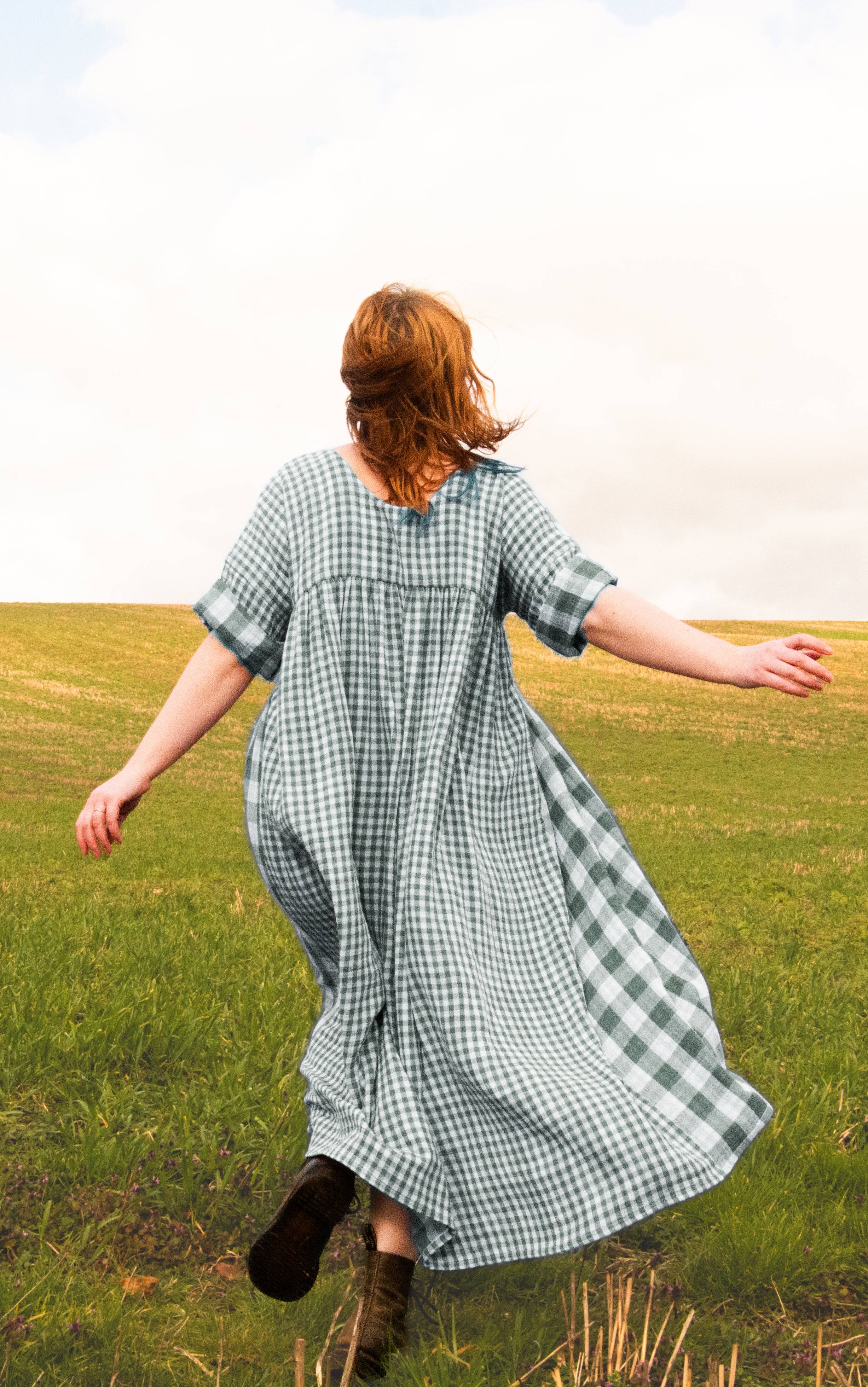 Based on our bestselling swing dress designs, The Everything Dress combines everything you love about them into one versatile piece. With a straight sleeve that can be rolled to a cuff, this dress is also reversible, so you can switch between a short bodice (and small check) on one side, and a longer one (and large check) on the other, both leading to opulent gathers that hang from this seam to create a full skirt with a LOT of swing! A dropped armhole means this one is super comfy, and it has roomy side pockets too.