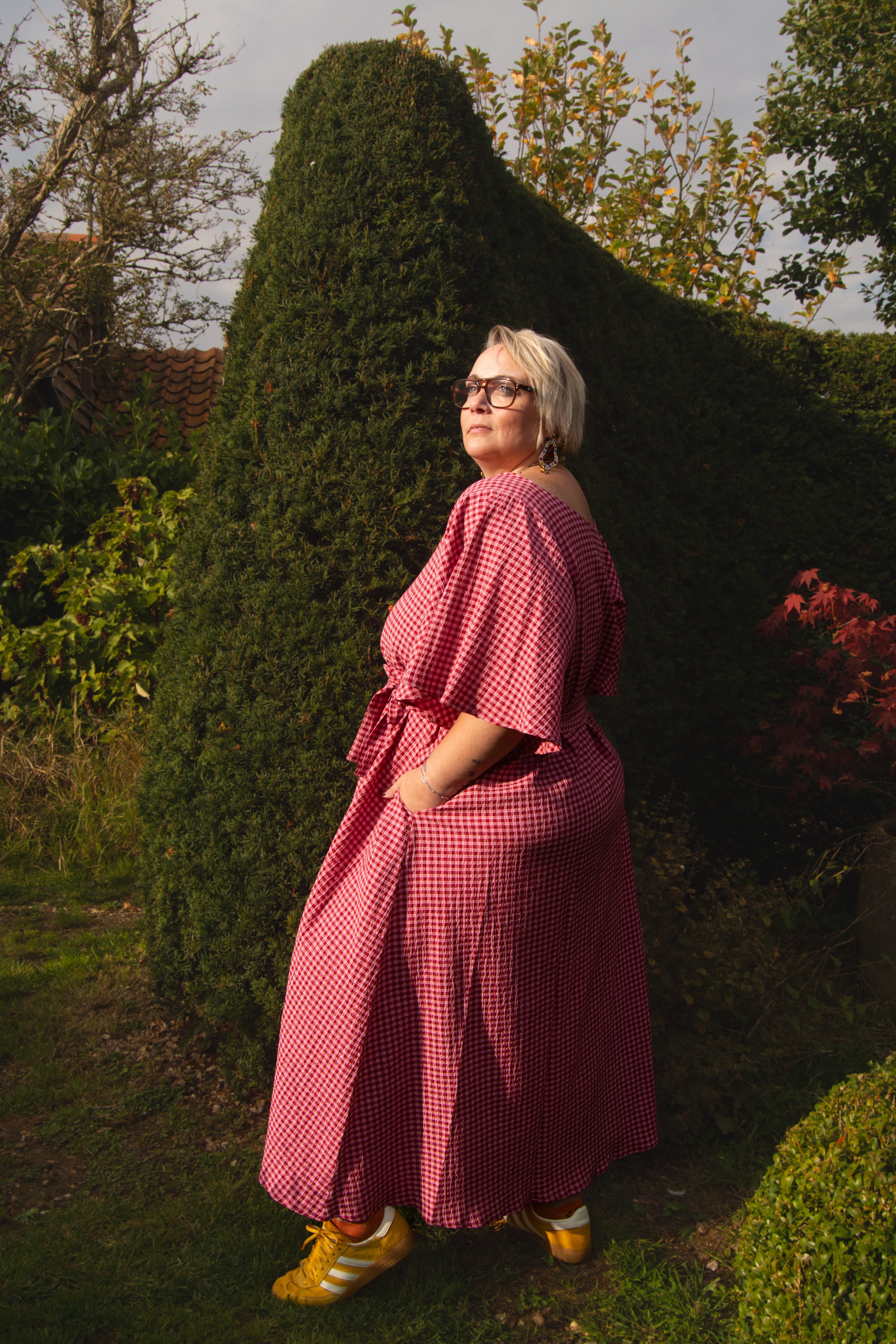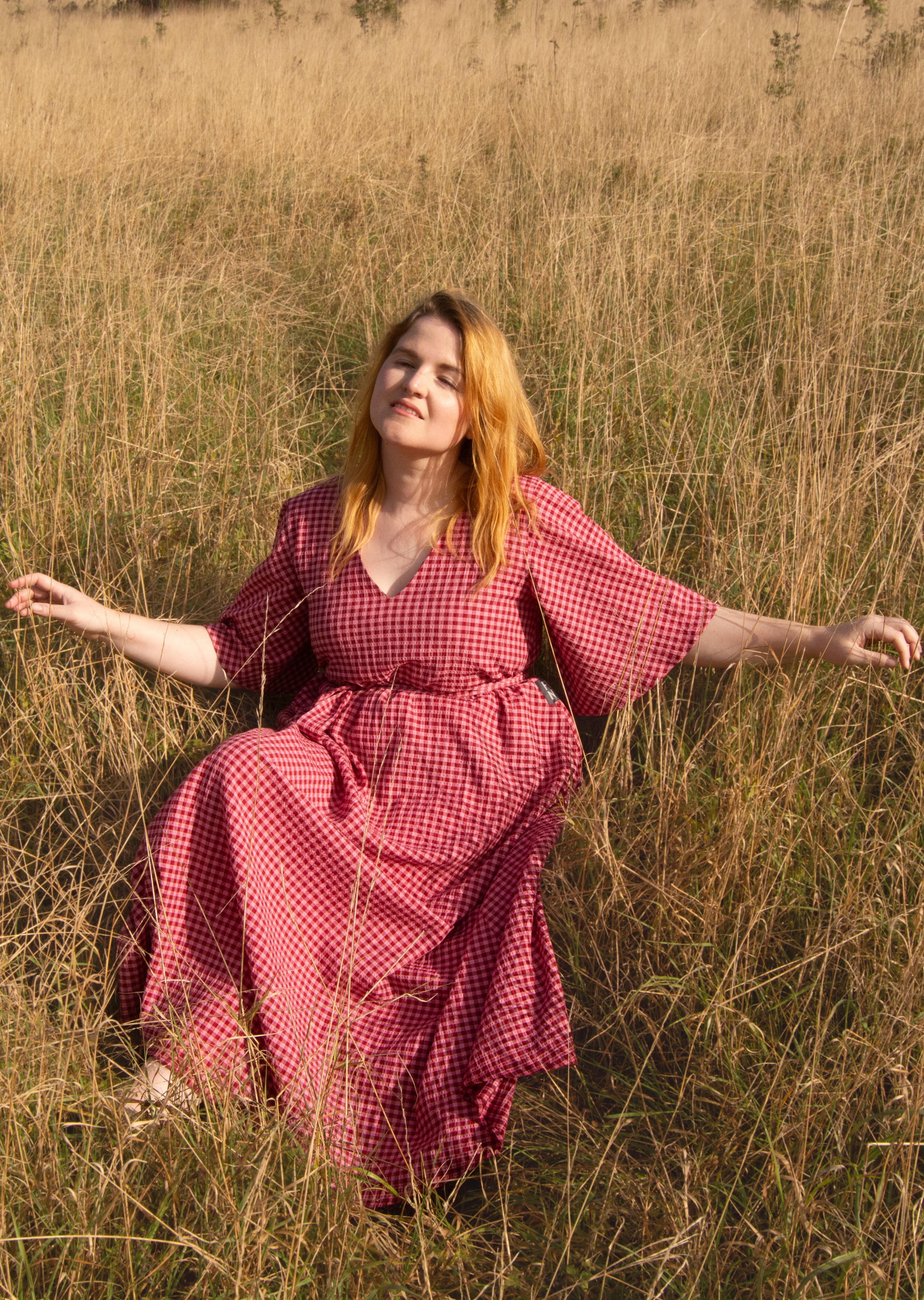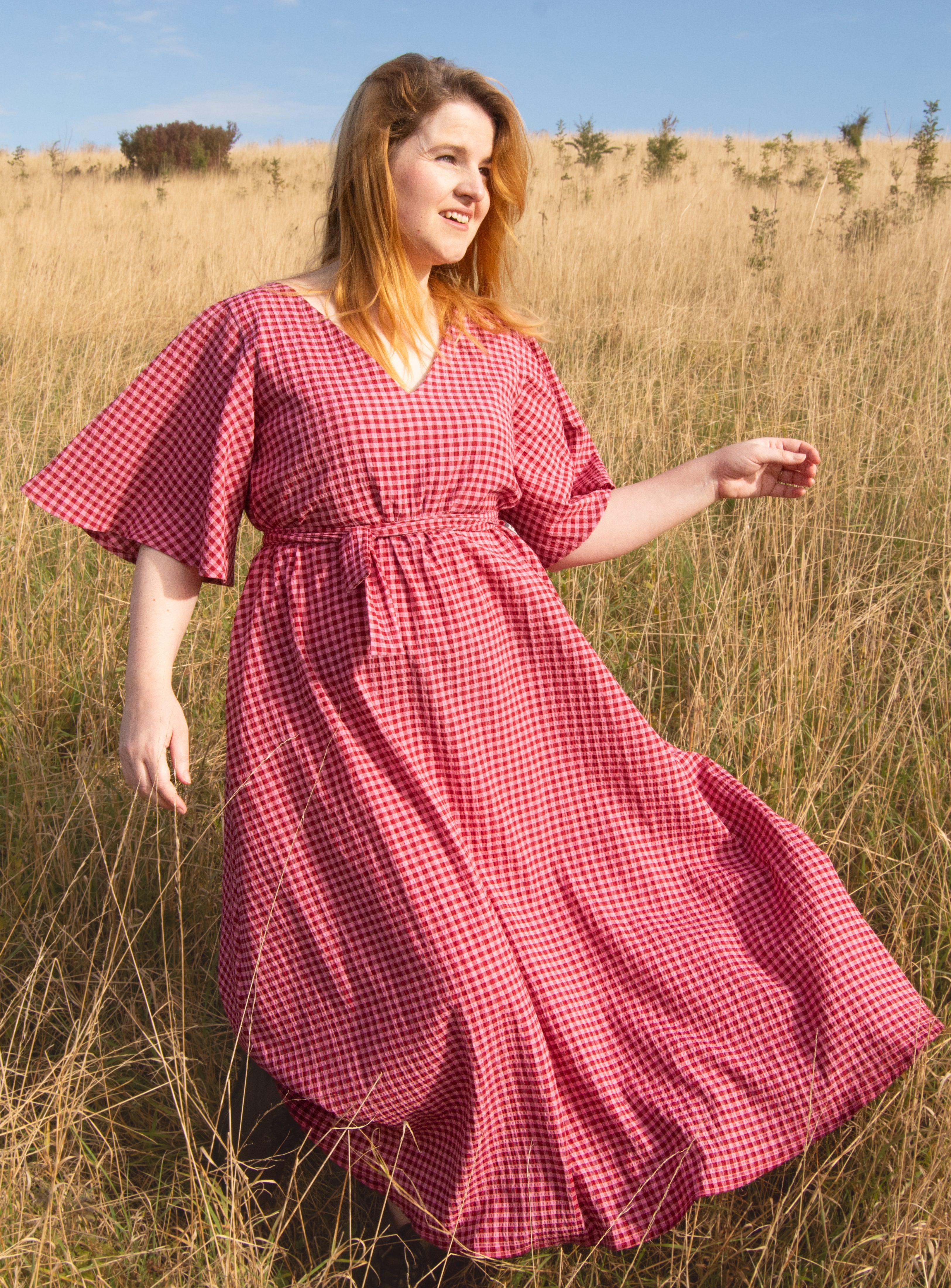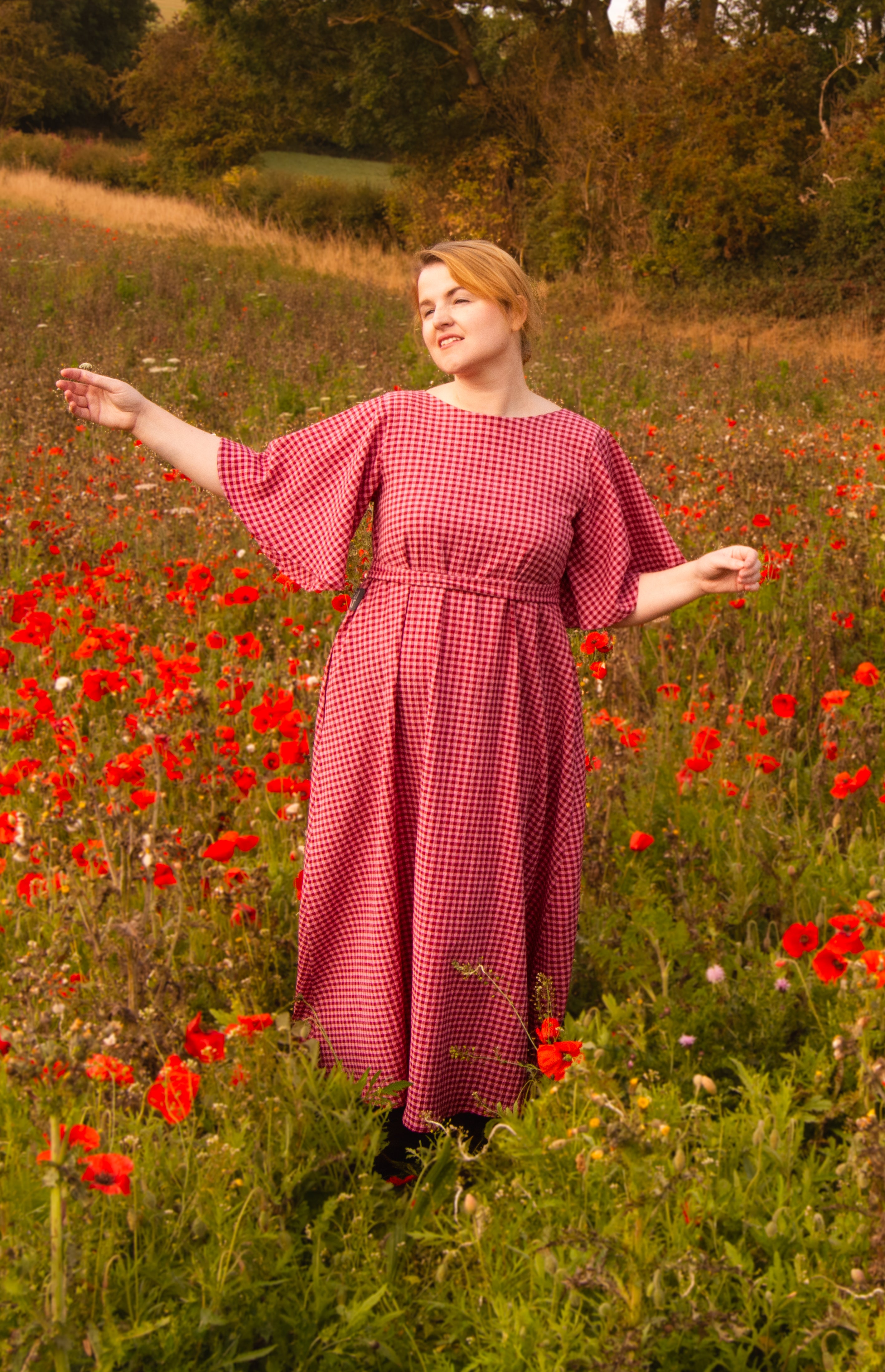 The Joan features a gently scooped slash neckline which can be reversed for a V neckline, plus an easy, skimming fit through the body, and a floaty sleeve. The skirt drapes just right - not too full, not too narrow - offering movement and comfort in equal measure, and a matching tie means you can nip it in or wear it loose. Plus deep side seam pockets!