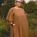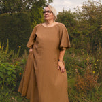 The Joan features a gently scooped slash neckline which can be reversed for a V neckline, plus an easy, skimming fit through the body, and a floaty sleeve. The skirt drapes just right - not too full, not too narrow - offering movement and comfort in equal measure, and a matching tie means you can nip it in or wear it loose. Plus deep side seam pockets!