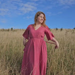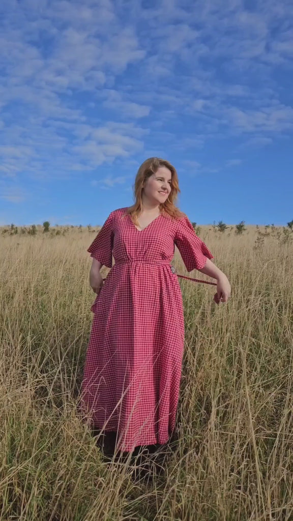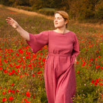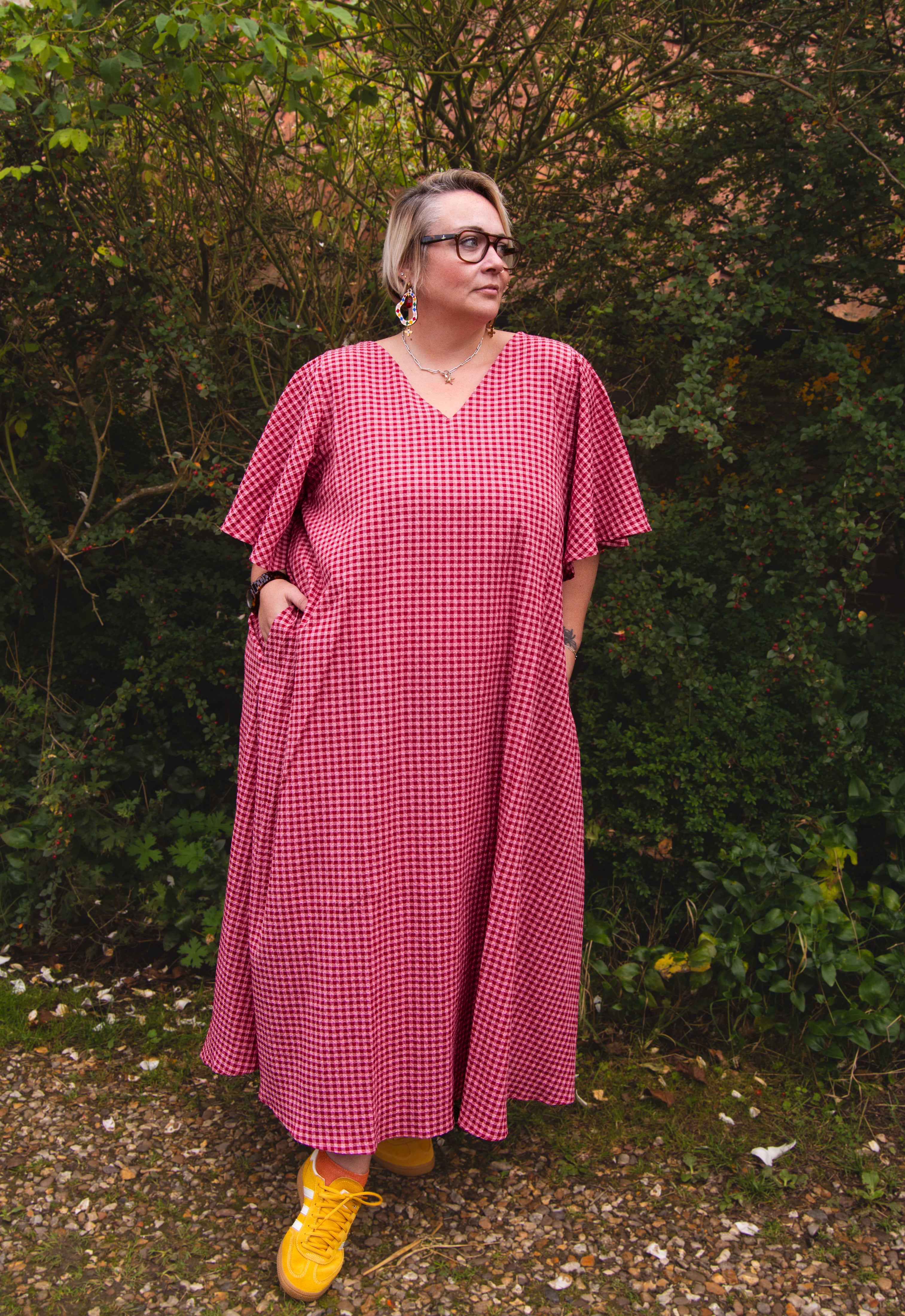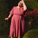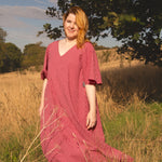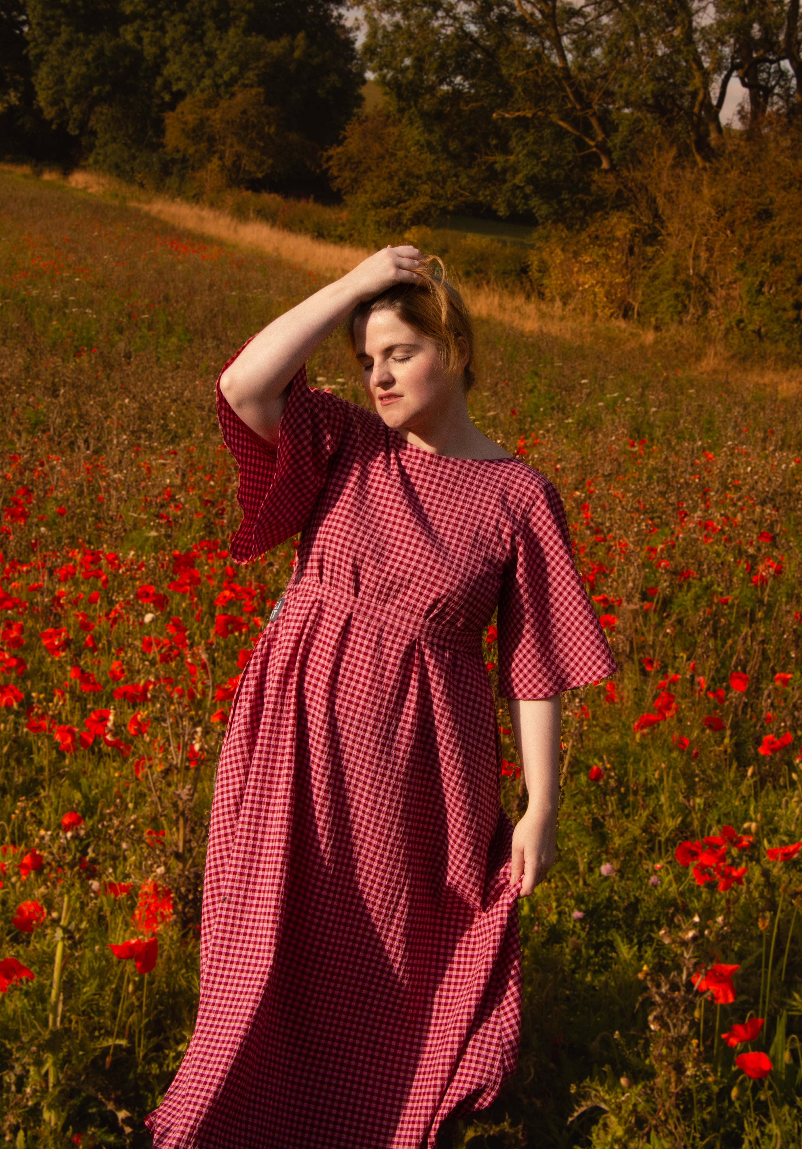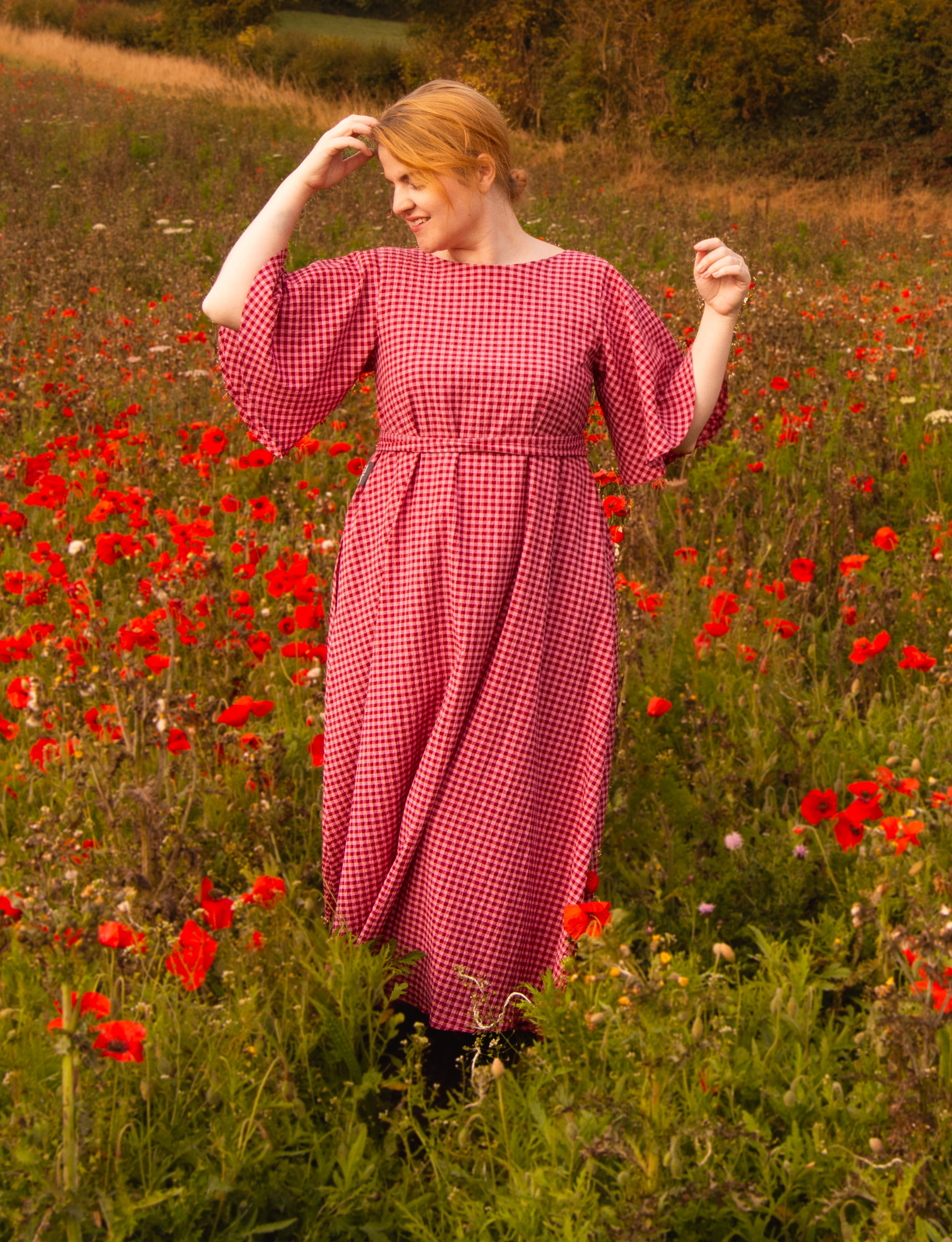 The Joan features a gently scooped slash neckline which can be reversed for a V neckline, plus an easy, skimming fit through the body, and a floaty sleeve. The skirt drapes just right - not too full, not too narrow - offering movement and comfort in equal measure, and a matching tie means you can nip it in or wear it loose. Plus deep side seam pockets!
