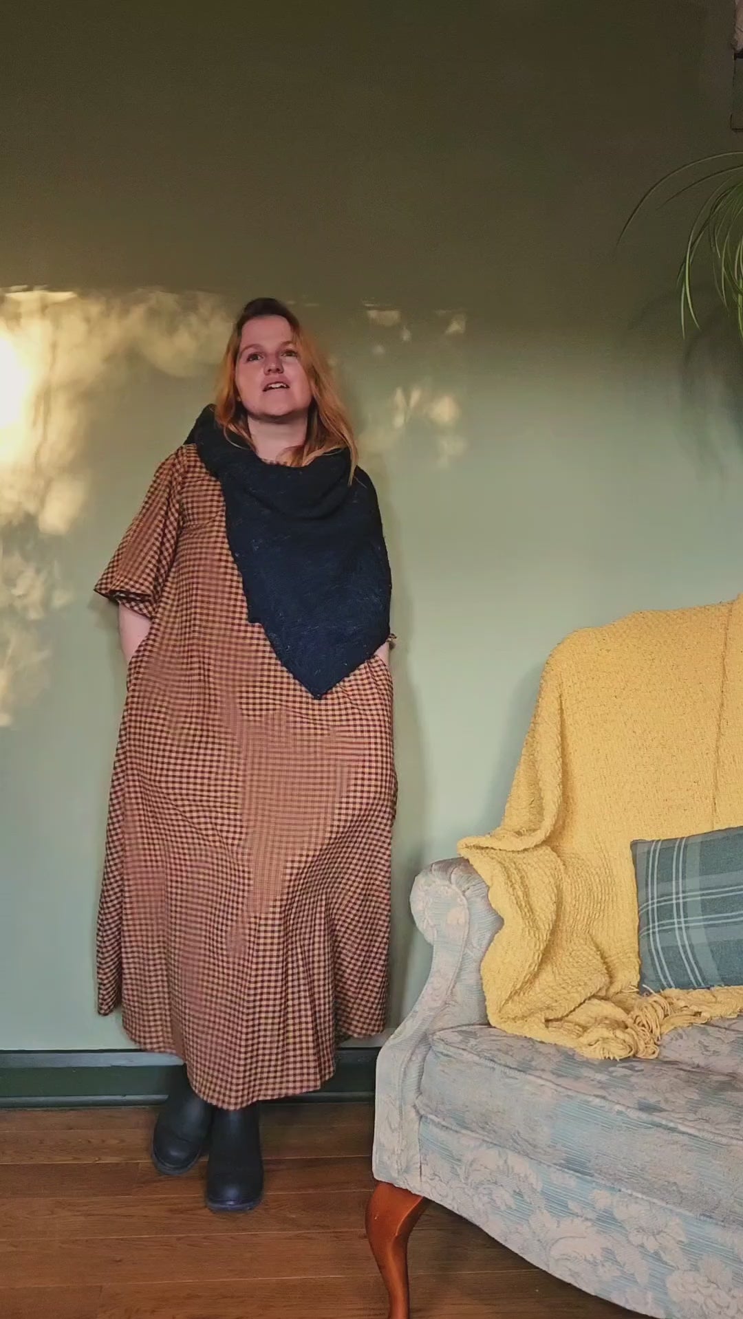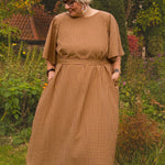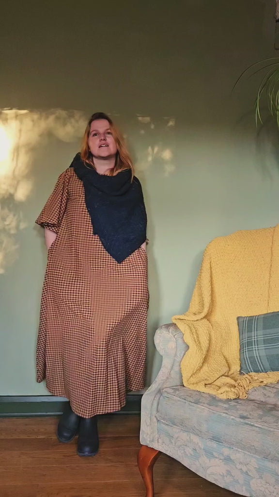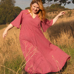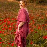 This is a more fitted style at the bust and loose and flowing through the waist and hip (unless you nip in at the waist with the removable waist tie). Pay attention to the bust measurement - this should be a couple of inches larger than your actual bust (see size guide tab) to ensure a great fit. If you are in between sizes we recommend sizing up!