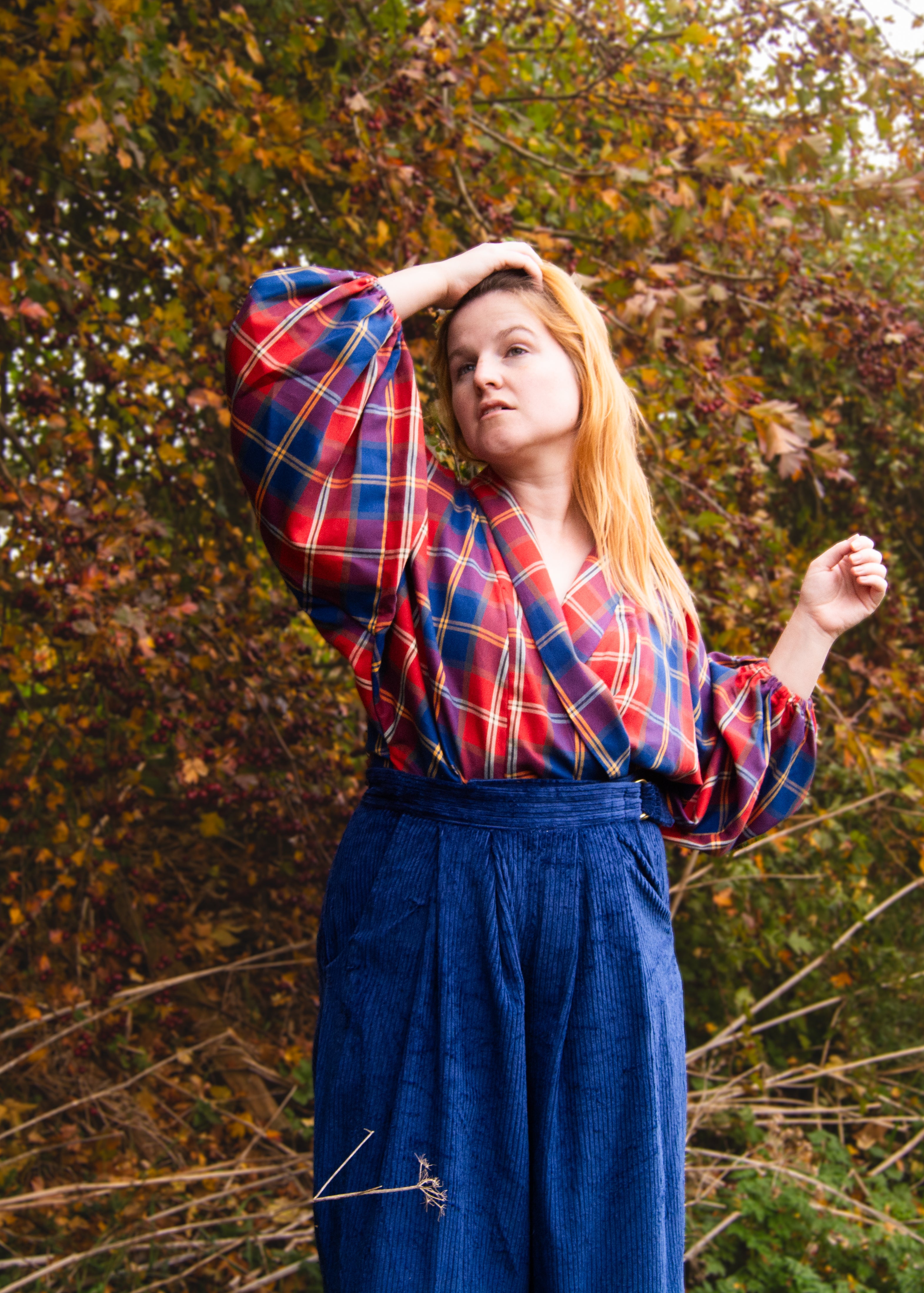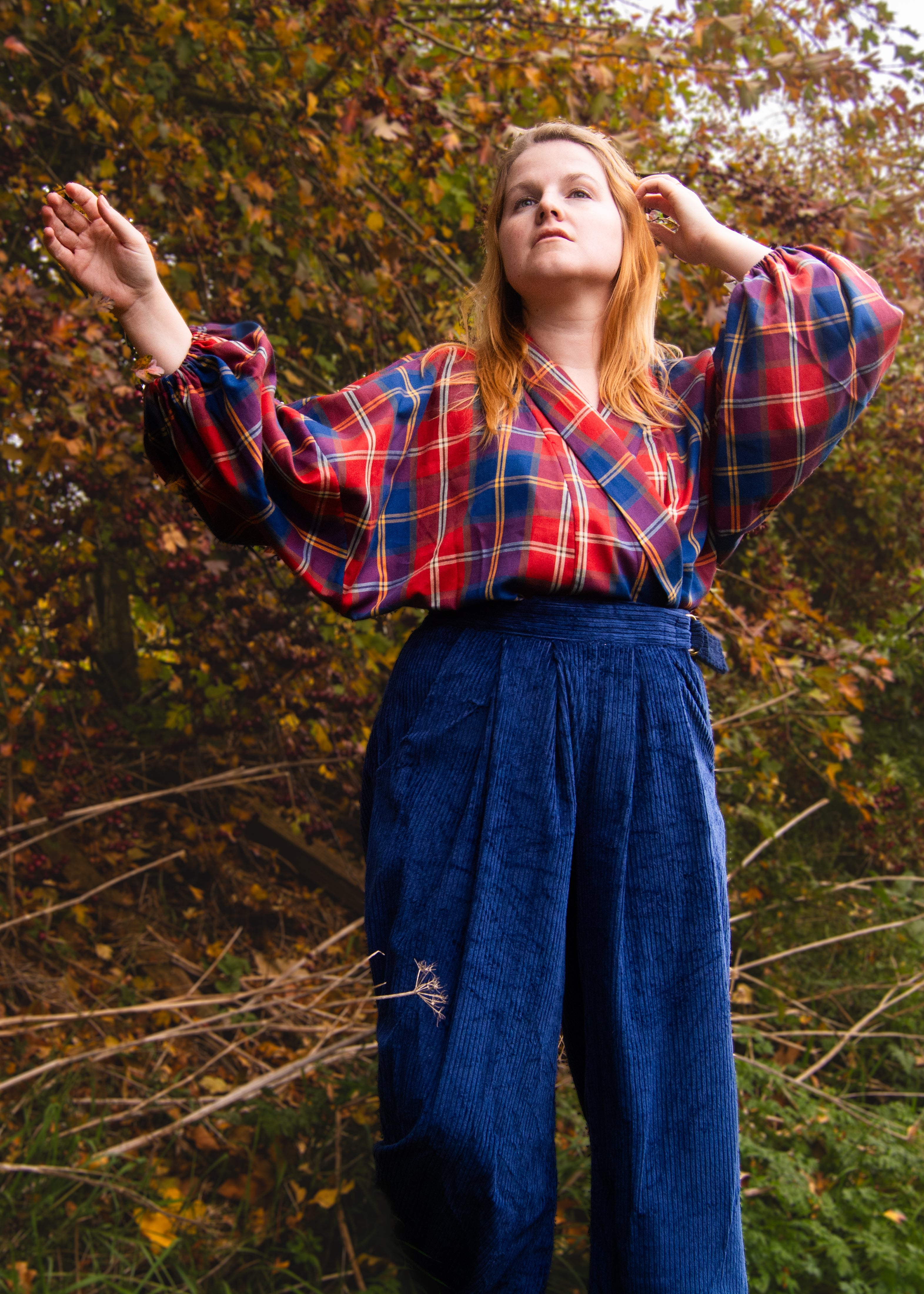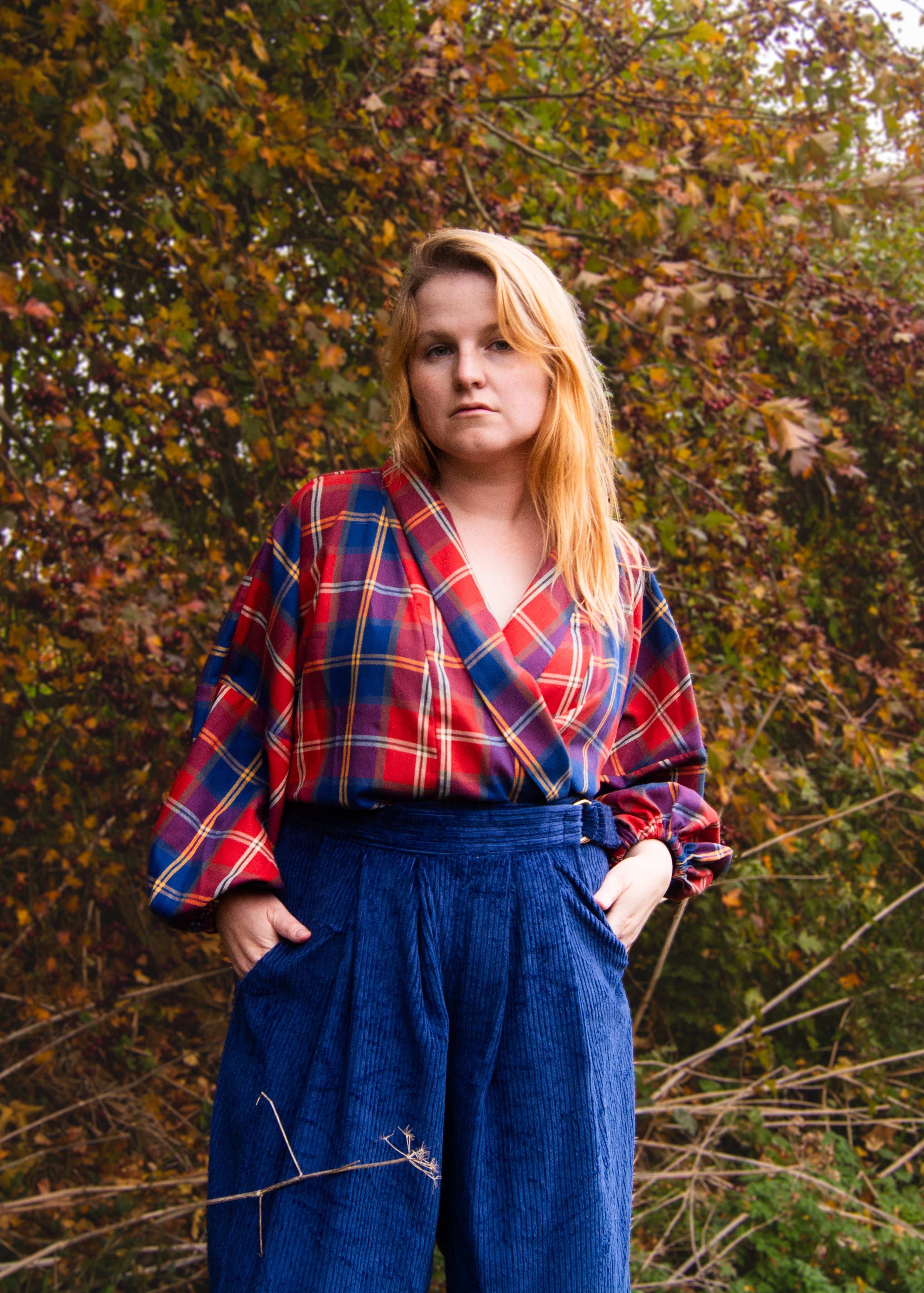 Crafted from a beautifully soft 100% brushed cotton, it drapes like a dream and feels soft against the skin. The terracotta red pairs with yellow and blue tones that match perfectly with our blue cord Margo Trousers. But trust me, you'll be wearing this with everything!