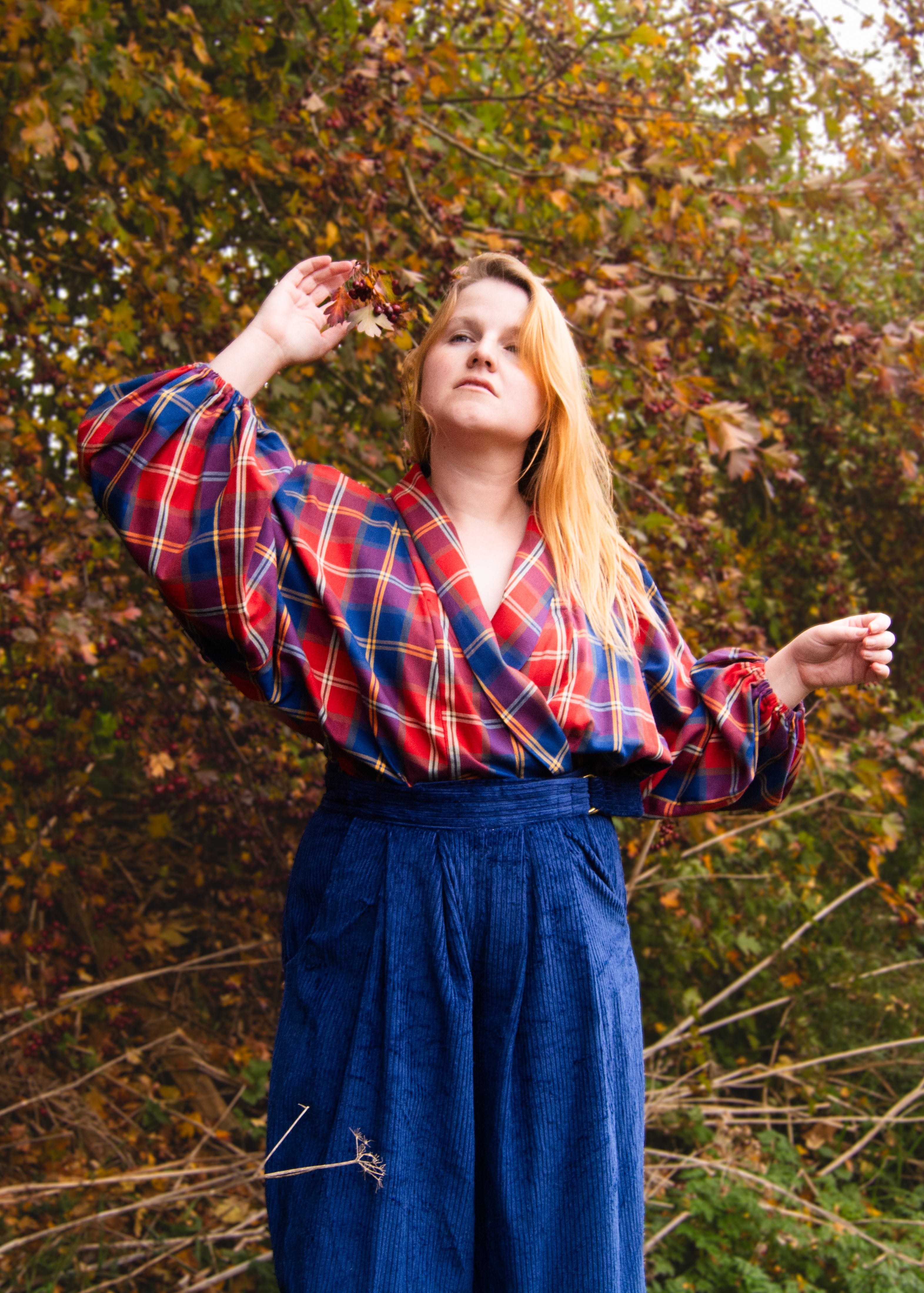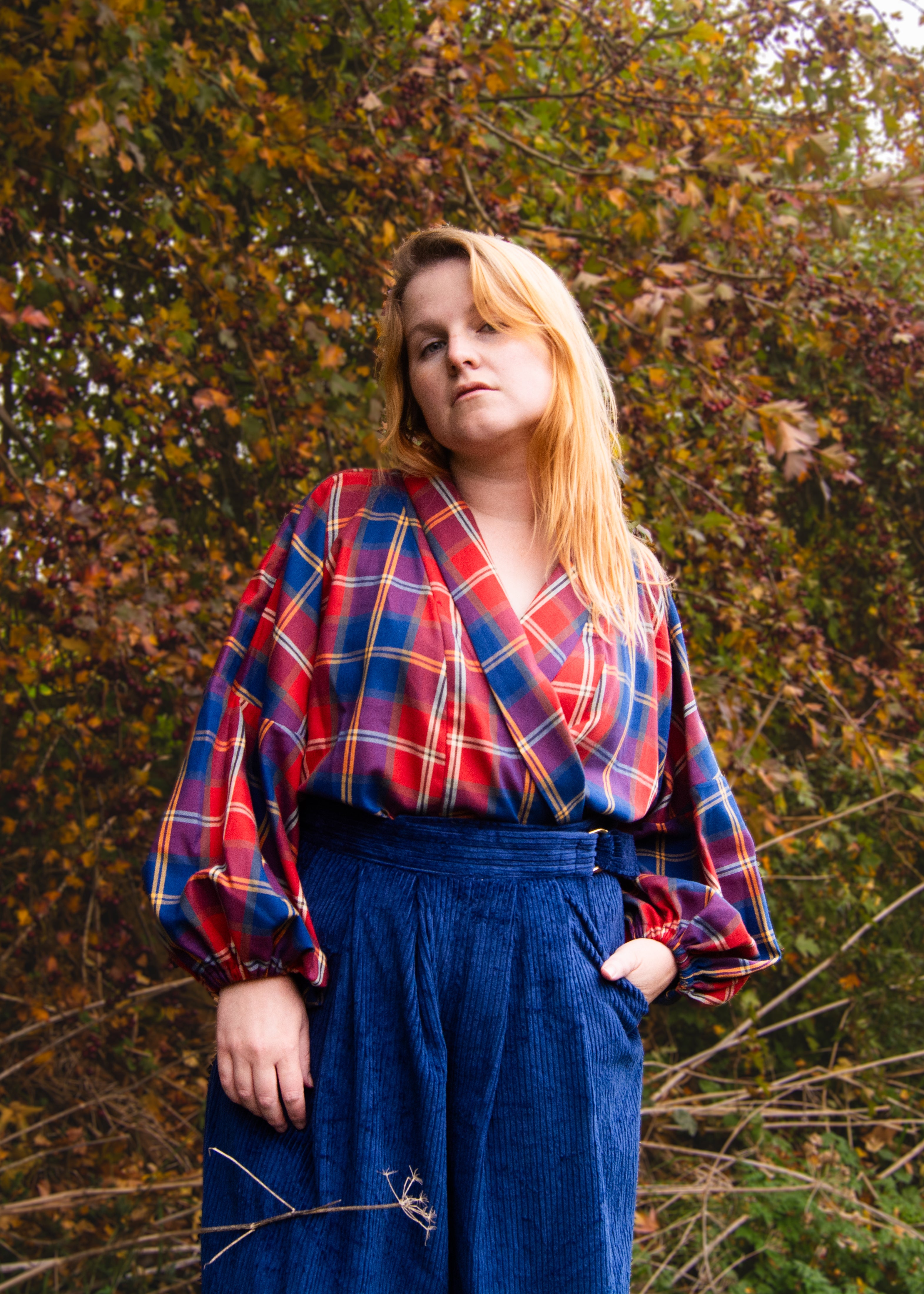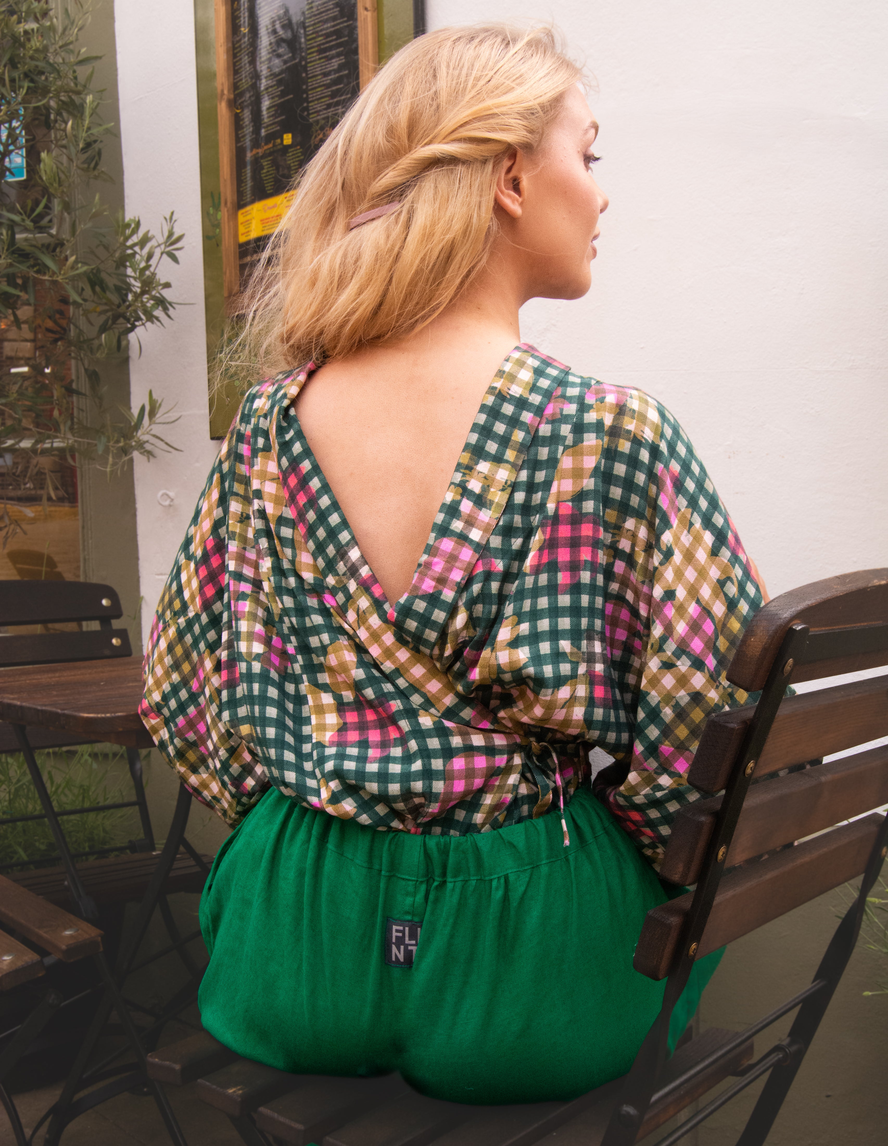 Crafted from a beautifully soft 100% brushed cotton, it drapes like a dream and feels soft against the skin. The terracotta red pairs with yellow and blue tones that match perfectly with our blue cord Margo Trousers. But trust me, you'll be wearing this with everything!
