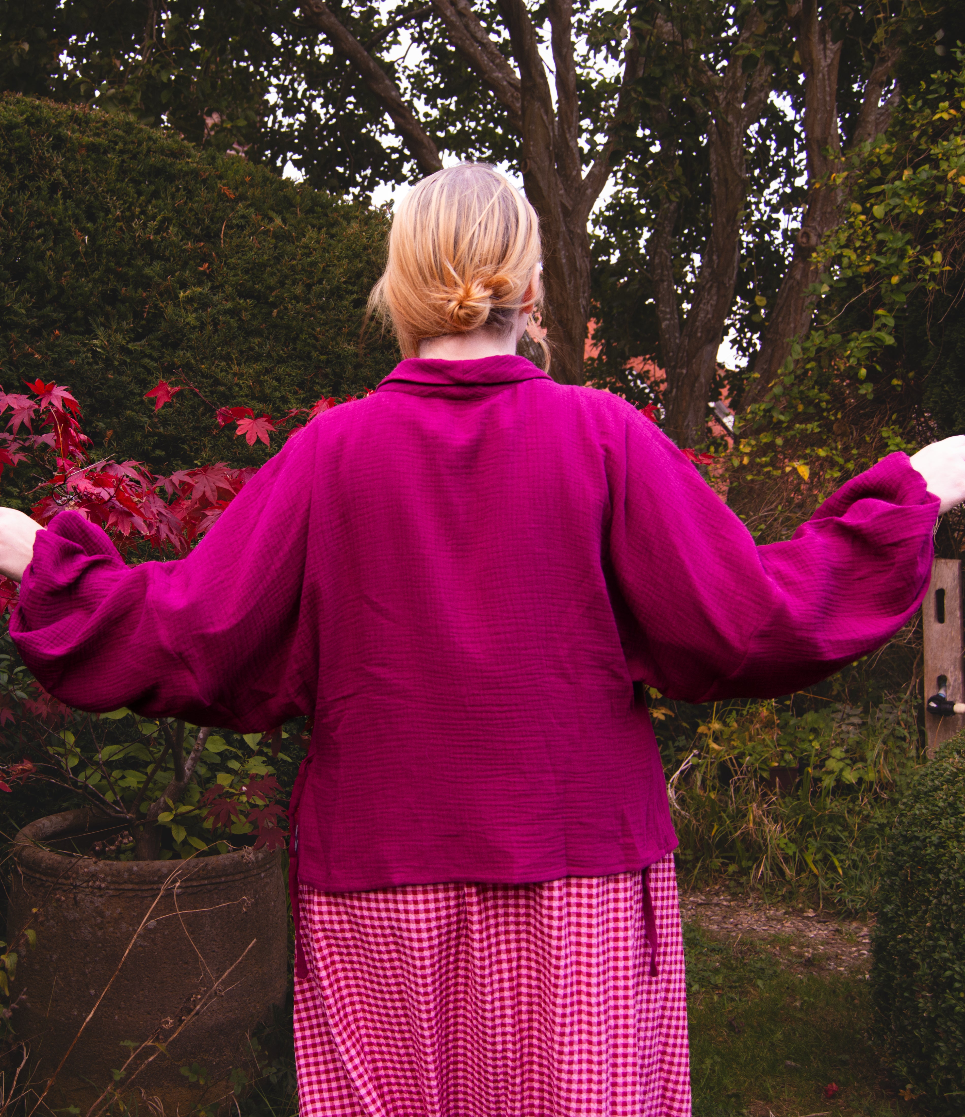 Finished with a long, full sleeve and elasticated cuff, you can wear it down for a billowy silhouette or push it up to the elbow for effortless volume and shape.