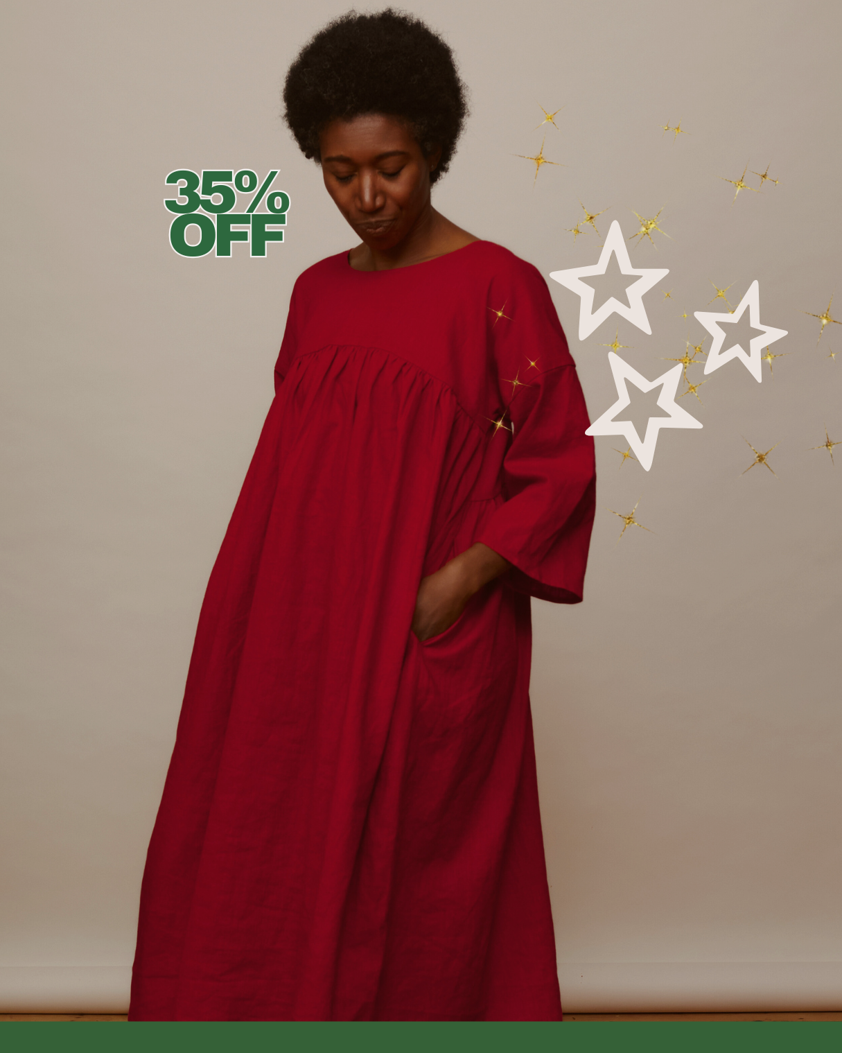 This version is made in a vibrant red linen/cotton blend (87% linen 13% cotton) and is finished with french seams (as with all our garments) to ensure it is the ultimate in comfort - you won't want to take it off!