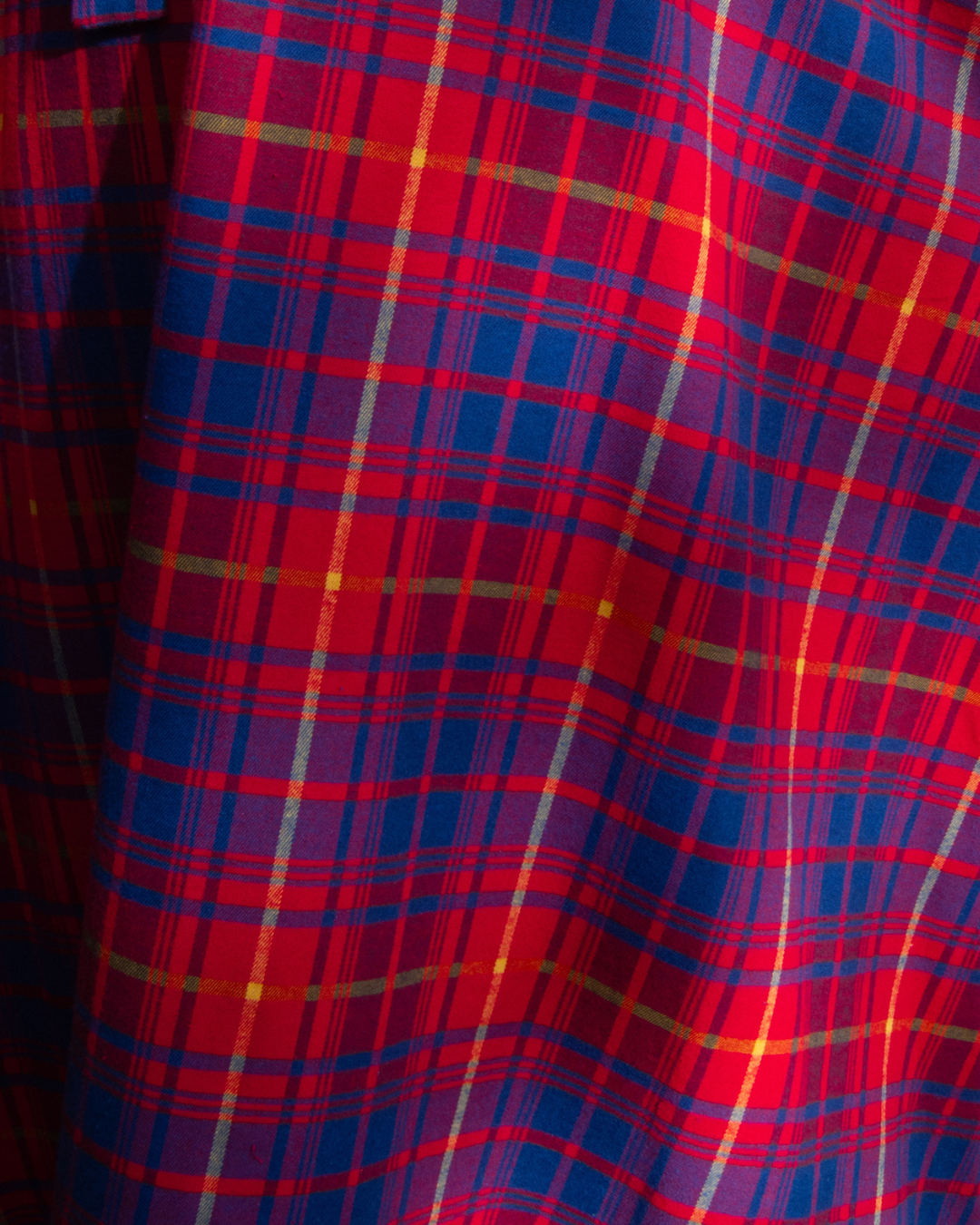 - Limited-edition deadstock brushed cotton in vibrant red check