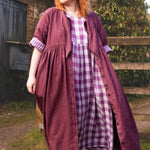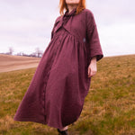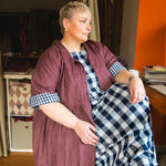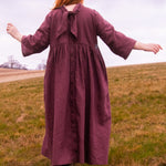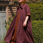 This style combines everything you love about them into one versatile piece. With a straight sleeve that can be rolled to a cuff, this dress is also reversible, so you can switch between buttons and a neck-tie on one side, and a high neck (and shorter bodice) on the other, both leading to opulent gathers that hang from this seam to create a full skirt with a LOT of swing! A dropped armhole means this one is super comfy, and it has roomy side pockets too.