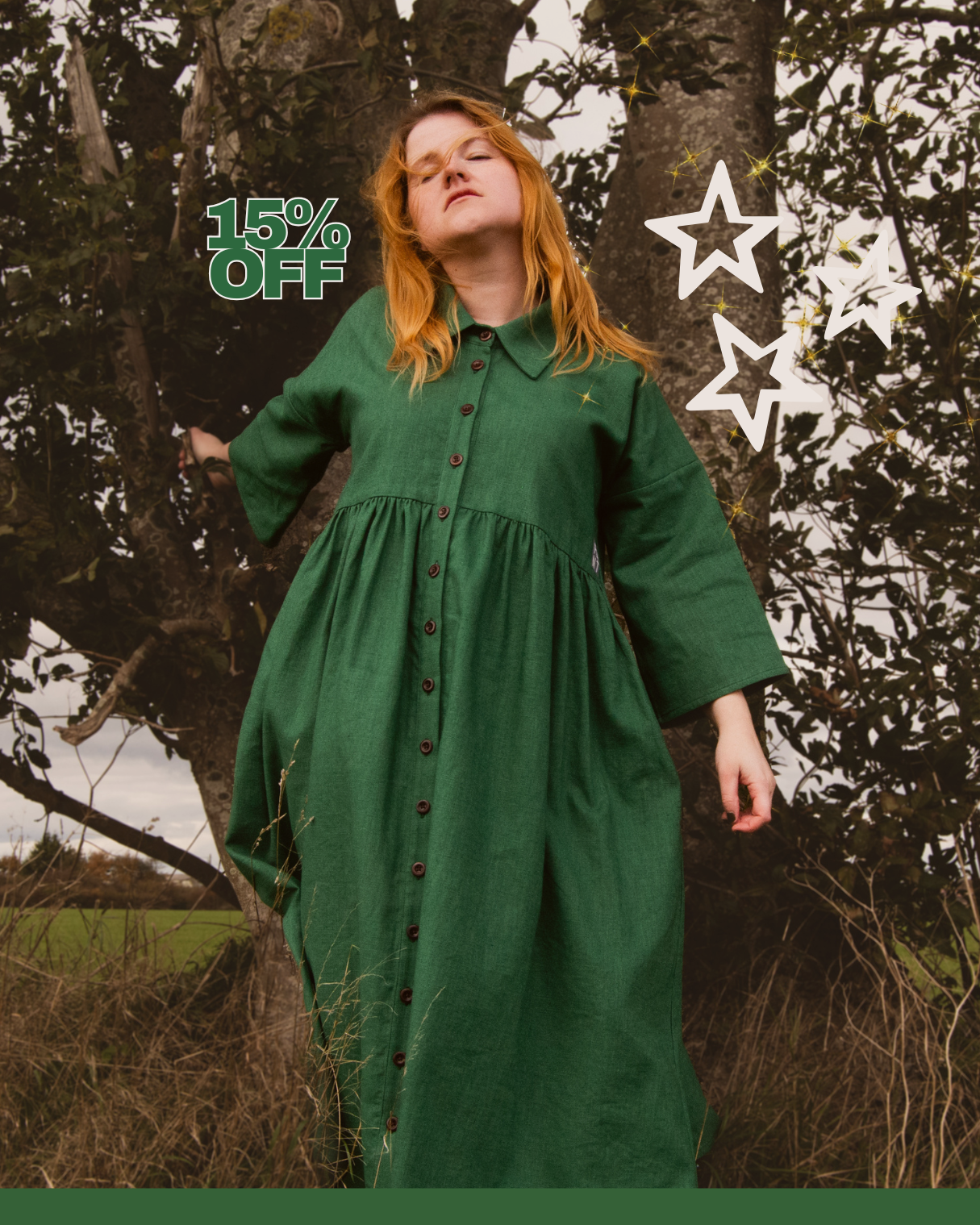 Made in a green linen/cotton blend (87% linen 13% cotton)