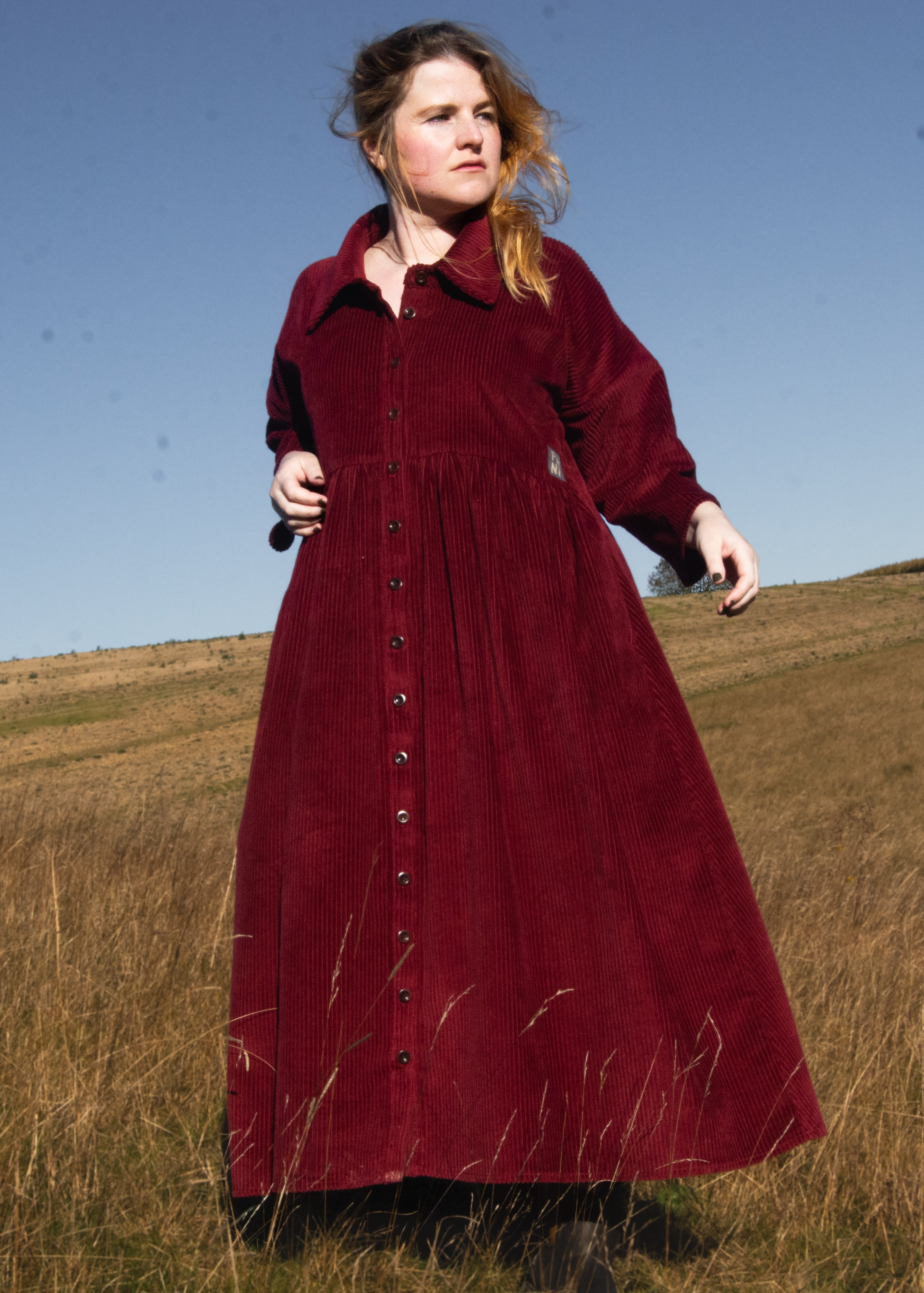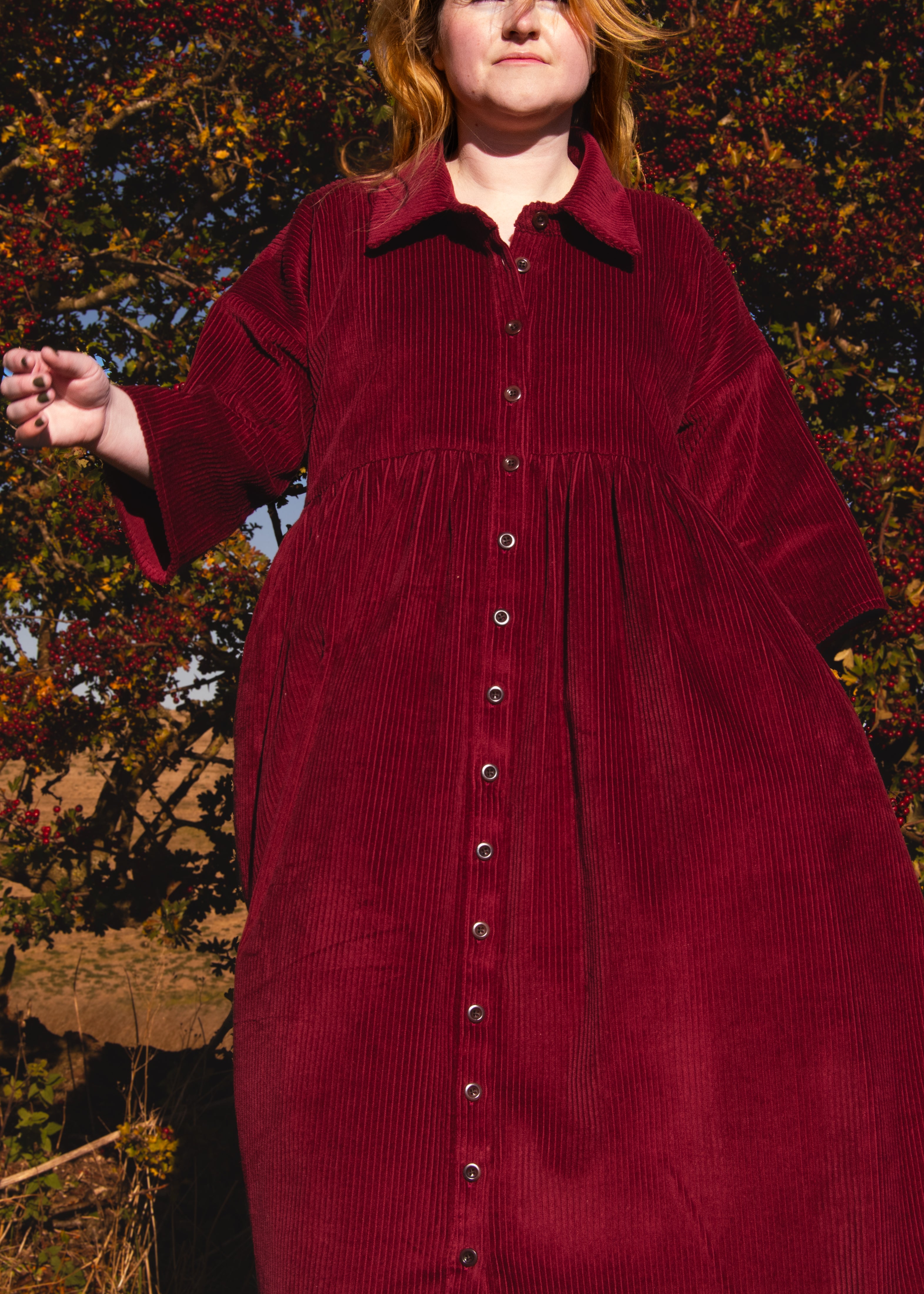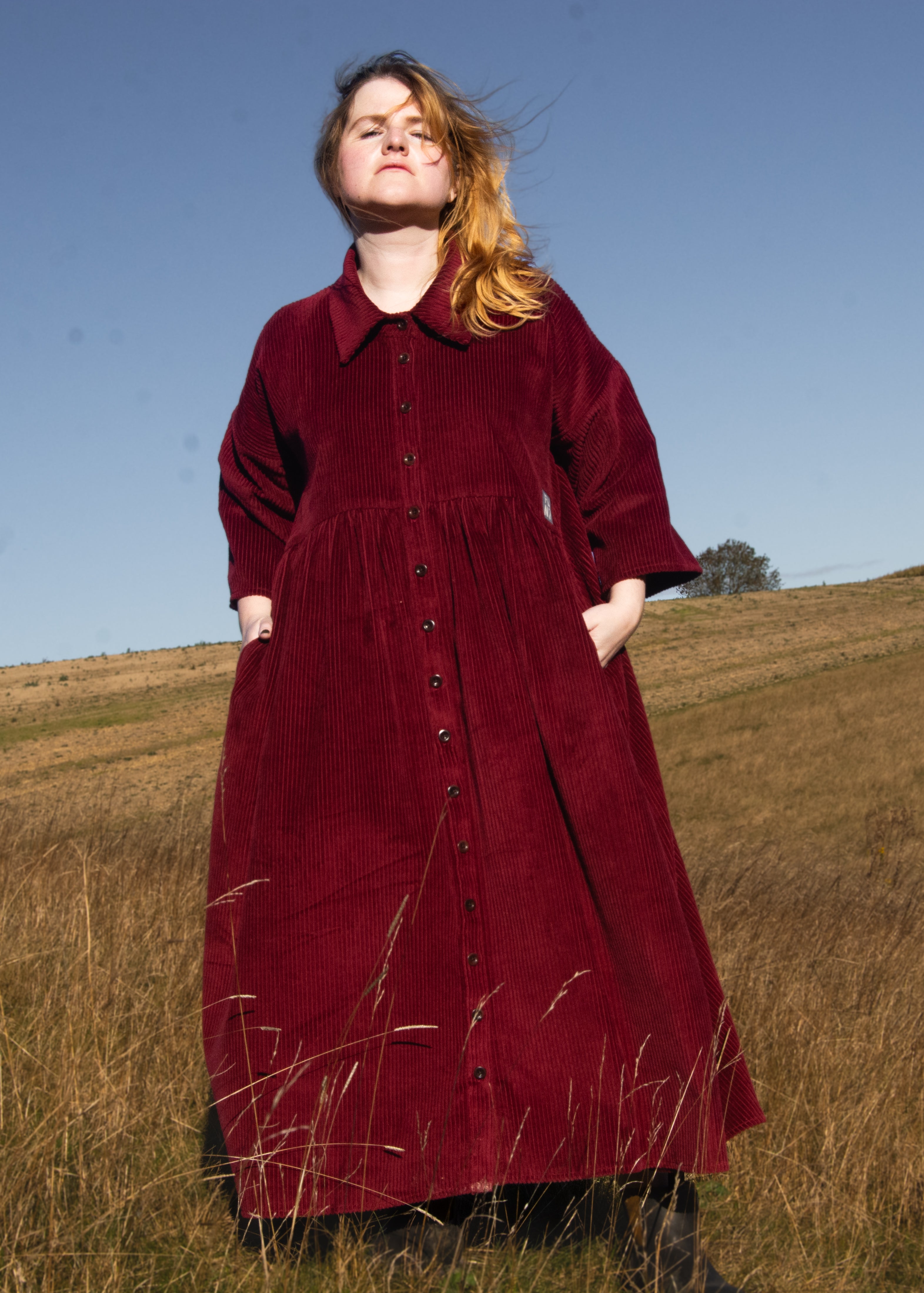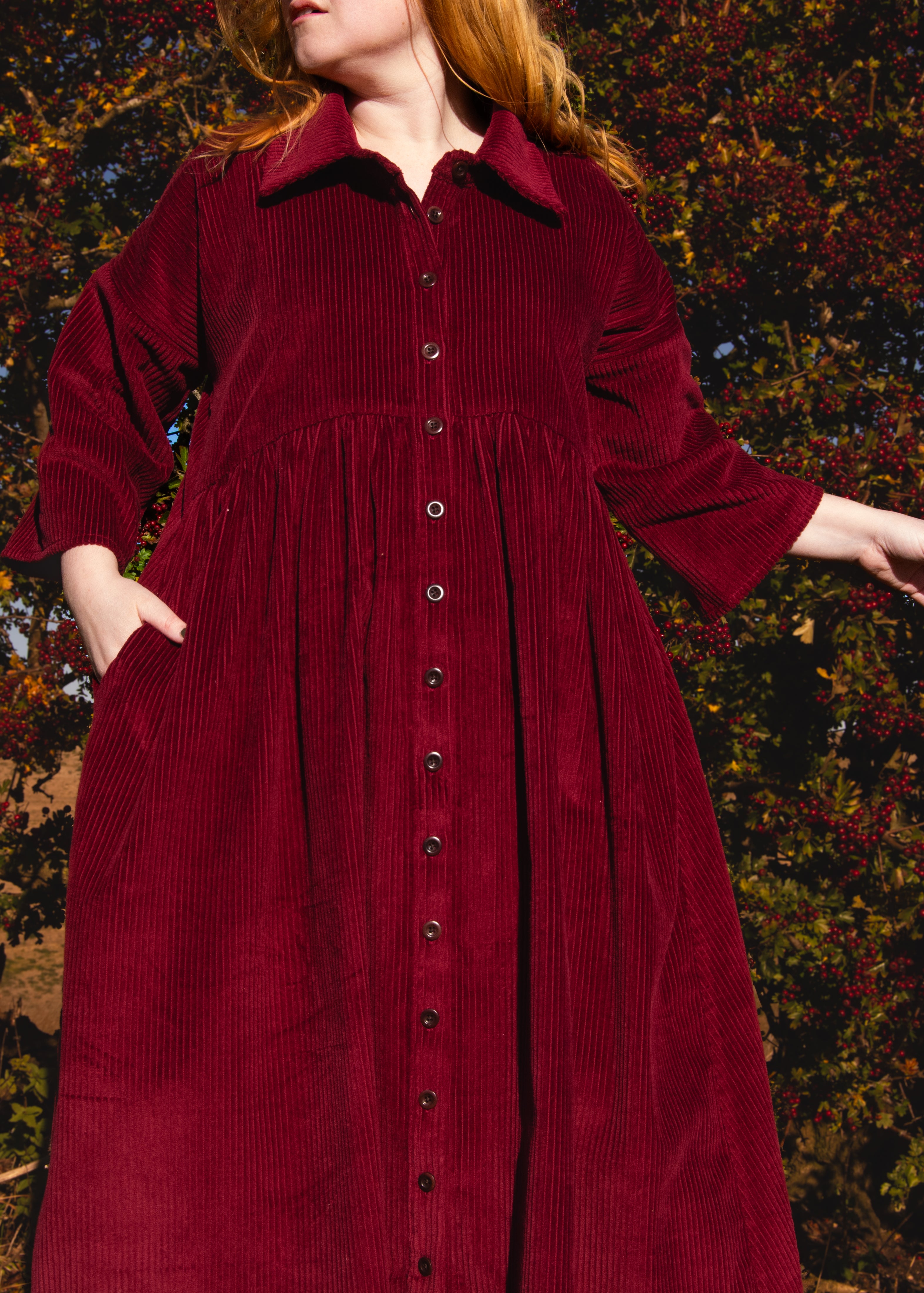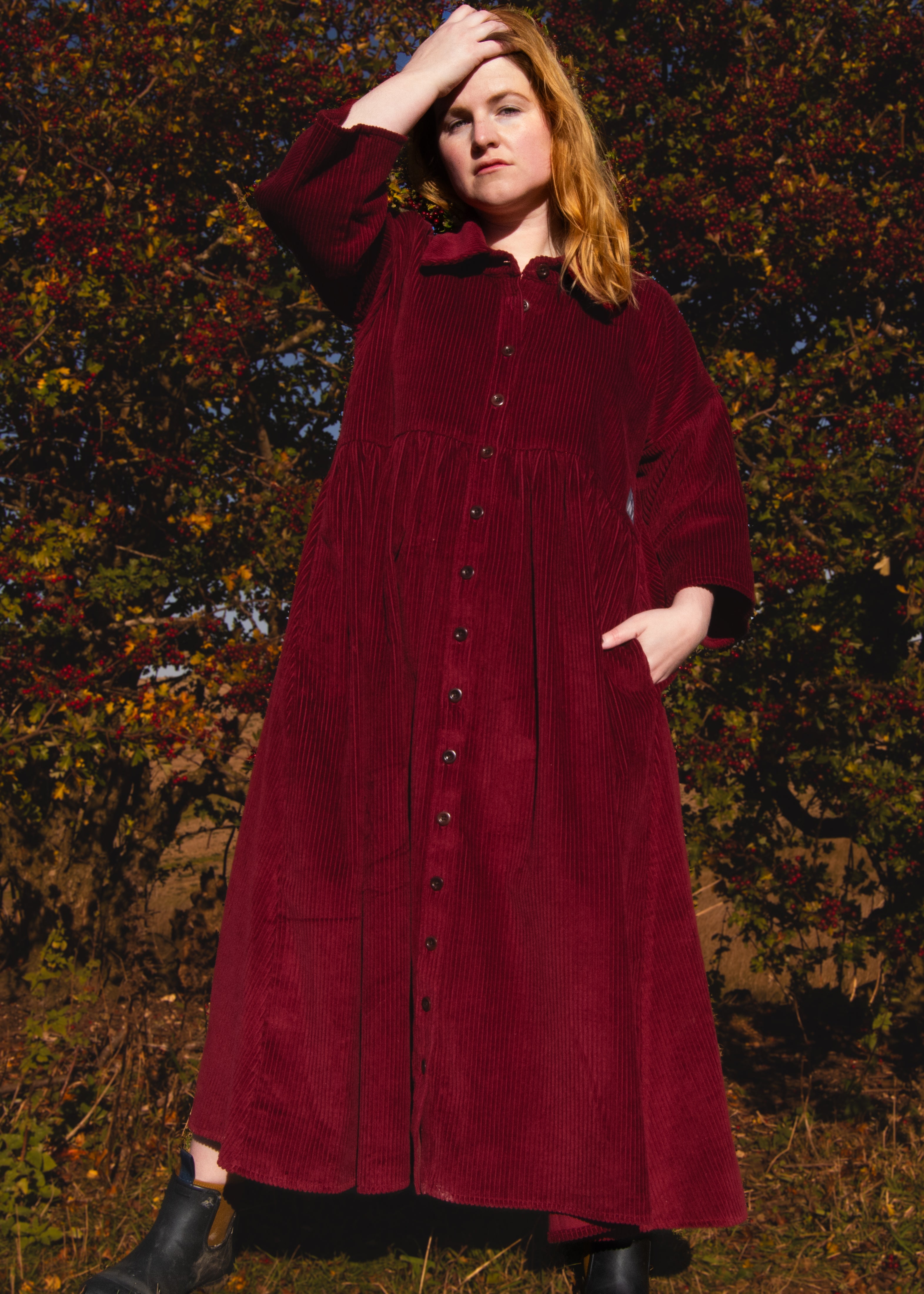 Designed for ultimate versatility, it features a full button-down front, so you can wear it solo as a statement dress or layer it open as a refined coat-dress. Deep side seam pockets add practicality without disrupting the clean lines, and French seam finishes ensure it feels just as good on the inside as it looks on the outside.