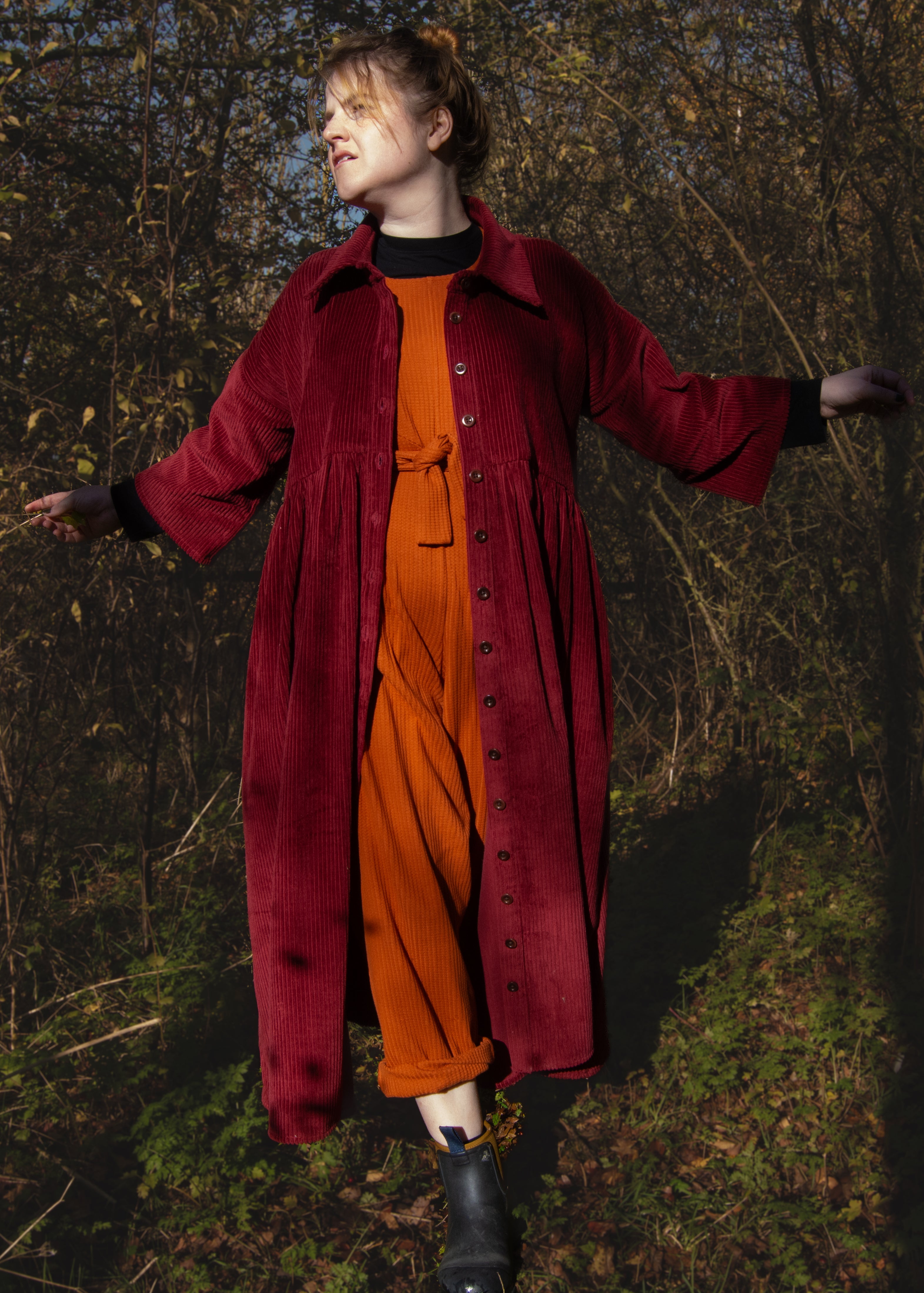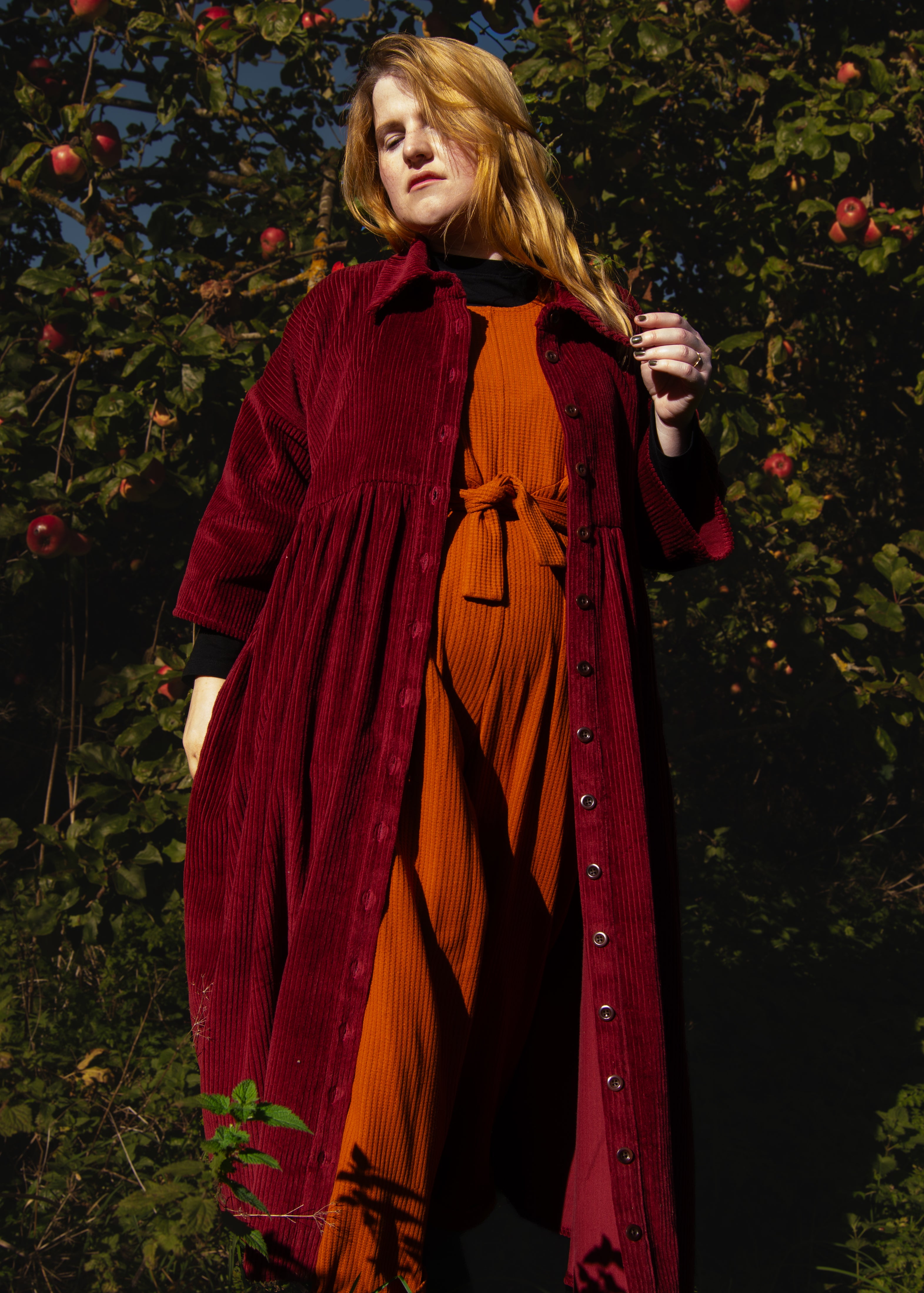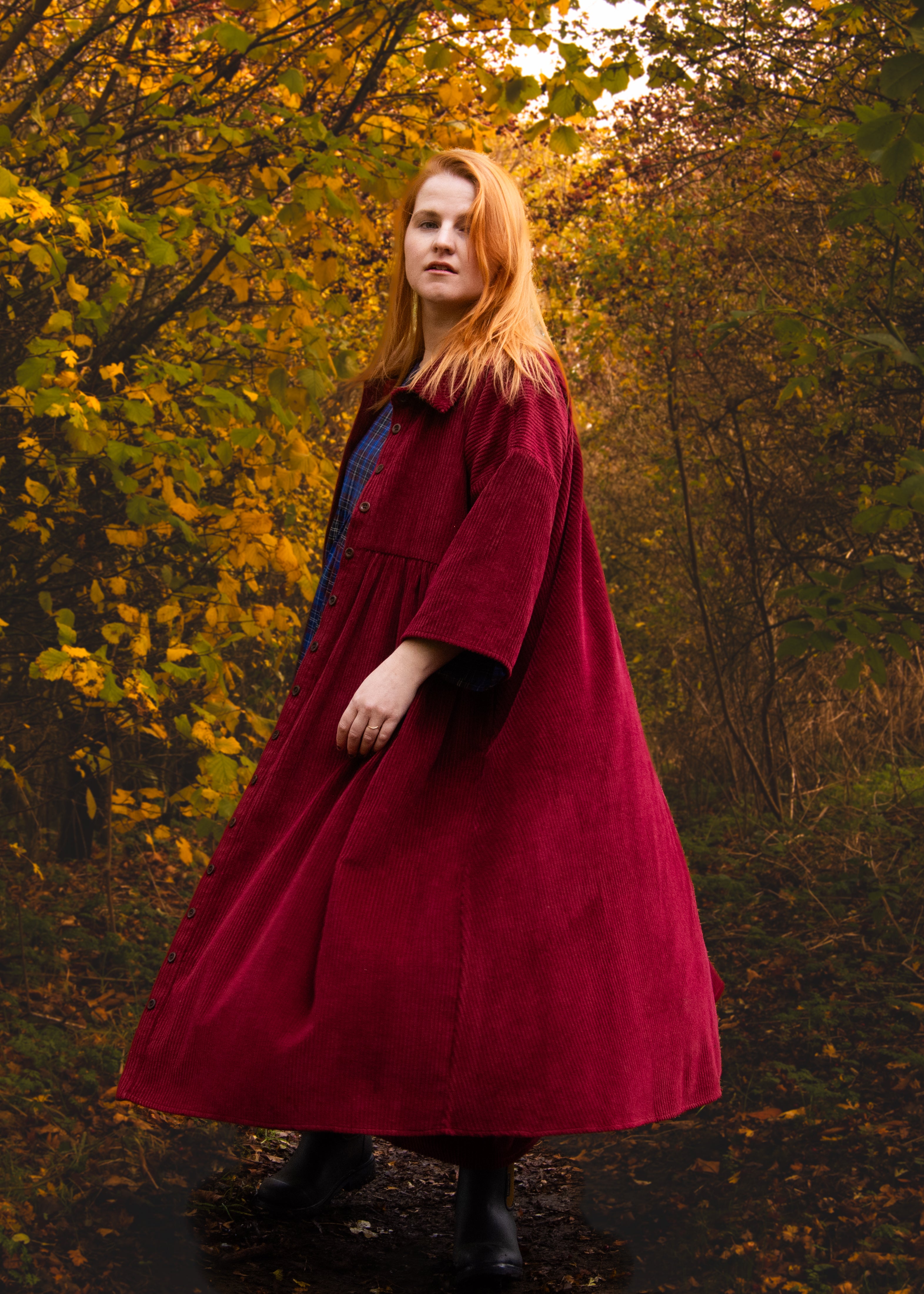 Choose between two distinct moods: a soft green linen–cotton blend for light, breathable ease, or a rich wine cotton corduroy for depth, texture, and warmth.