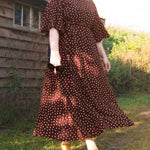 The Joan features a gently scooped slash neckline which can be reversed for a V neckline, plus an easy, skimming fit through the body, and a floaty sleeve. The skirt drapes just right - not too full, not too narrow - offering movement and comfort in equal measure, and a matching tie means you can nip it in or wear it loose. Plus deep side seam pockets!