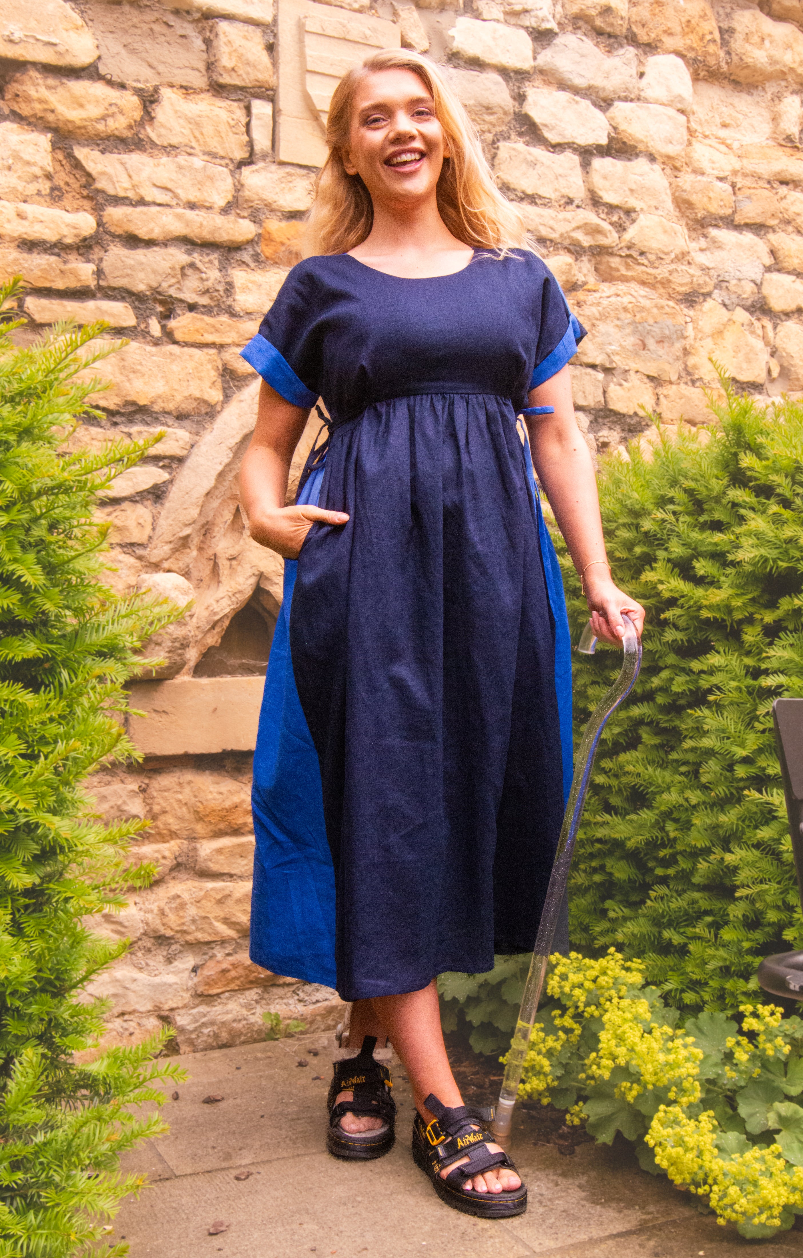 I have several HoF dresses and love them all but think this is my favourite to date. The dress looks extremely sophisticated with the contrast fabric at the top but is still as comfortable and beautifully made as I’d expect. Love the ties on the side to change the shape depending on my mood. Both fabrics are lovely and great quality.