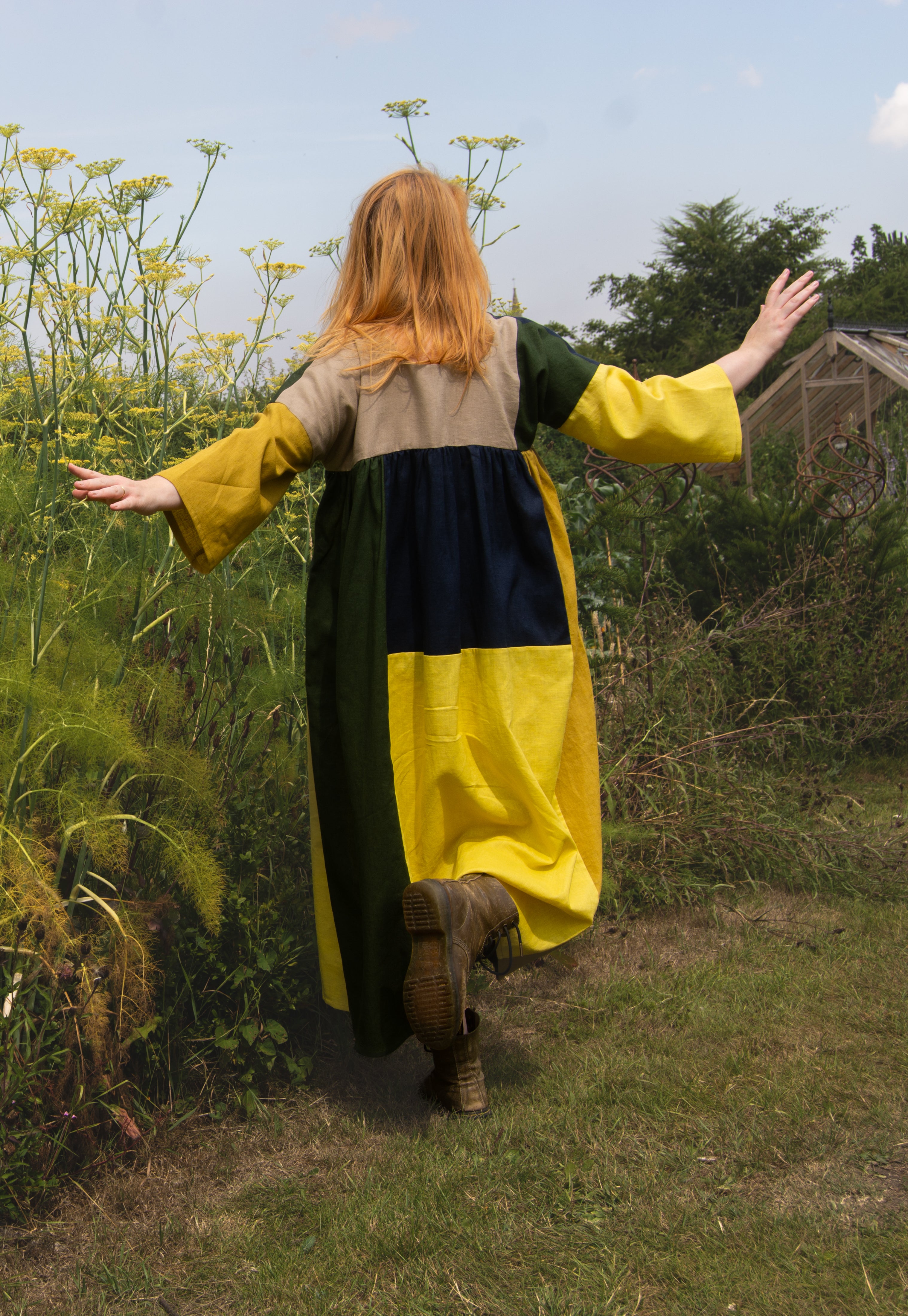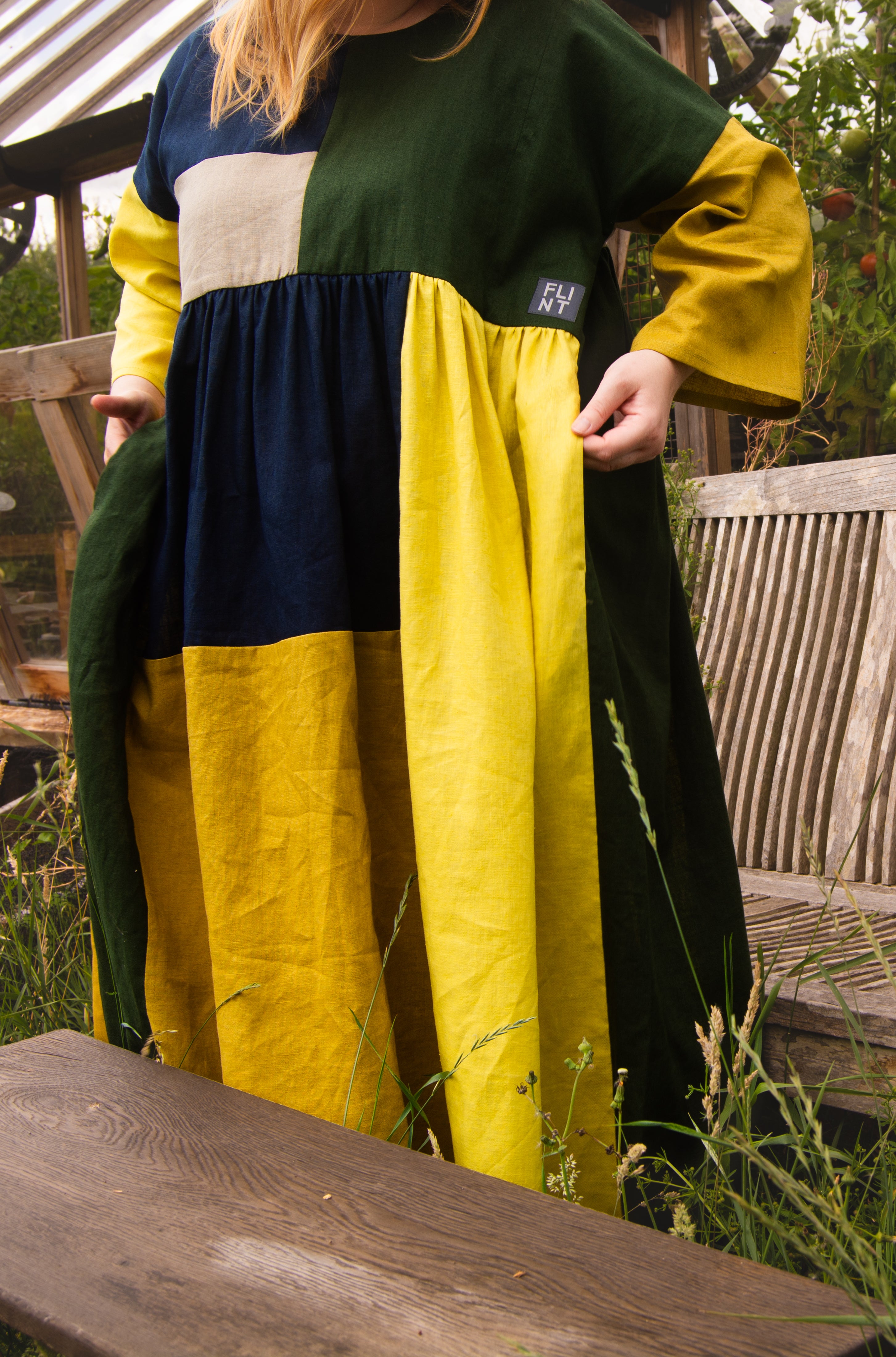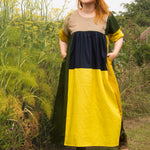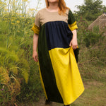 Crafted slowly and thoughtfully in an Oeko-Tex certified linen–cotton blend, the patchwork design makes each piece feel truly one of a kind. It’s the kind of dress you’ll reach for again and again — the statement piece that somehow goes with everything.